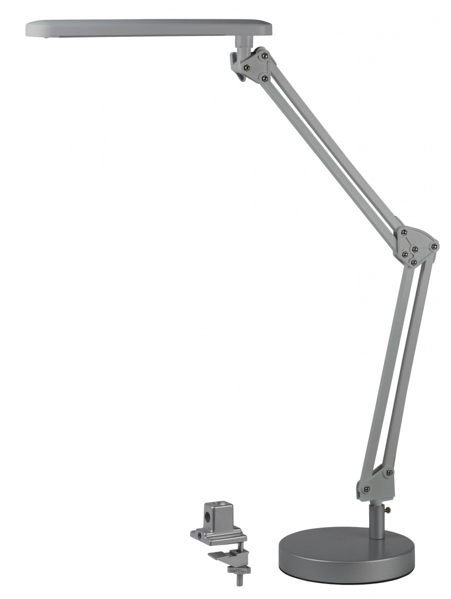 - Светильник светодиодный ЭРА настольный NLED-440-7W-S 3000К 2 варианта крепления: струбцина+основание серебро (6/144) (Б0008001)