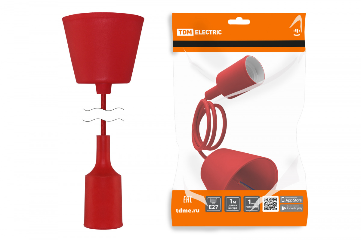 - Патрон TDM пластиковый Е27 с подвесом 1 м, красный (1/60) (SQ0335-0063)