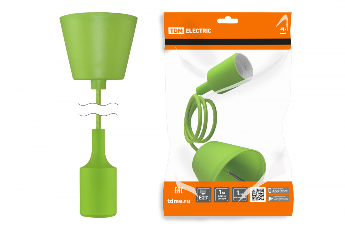 - Патрон TDM пластиковый Е27 с подвесом 1 м, зеленый (1/60) (SQ0335-0064)