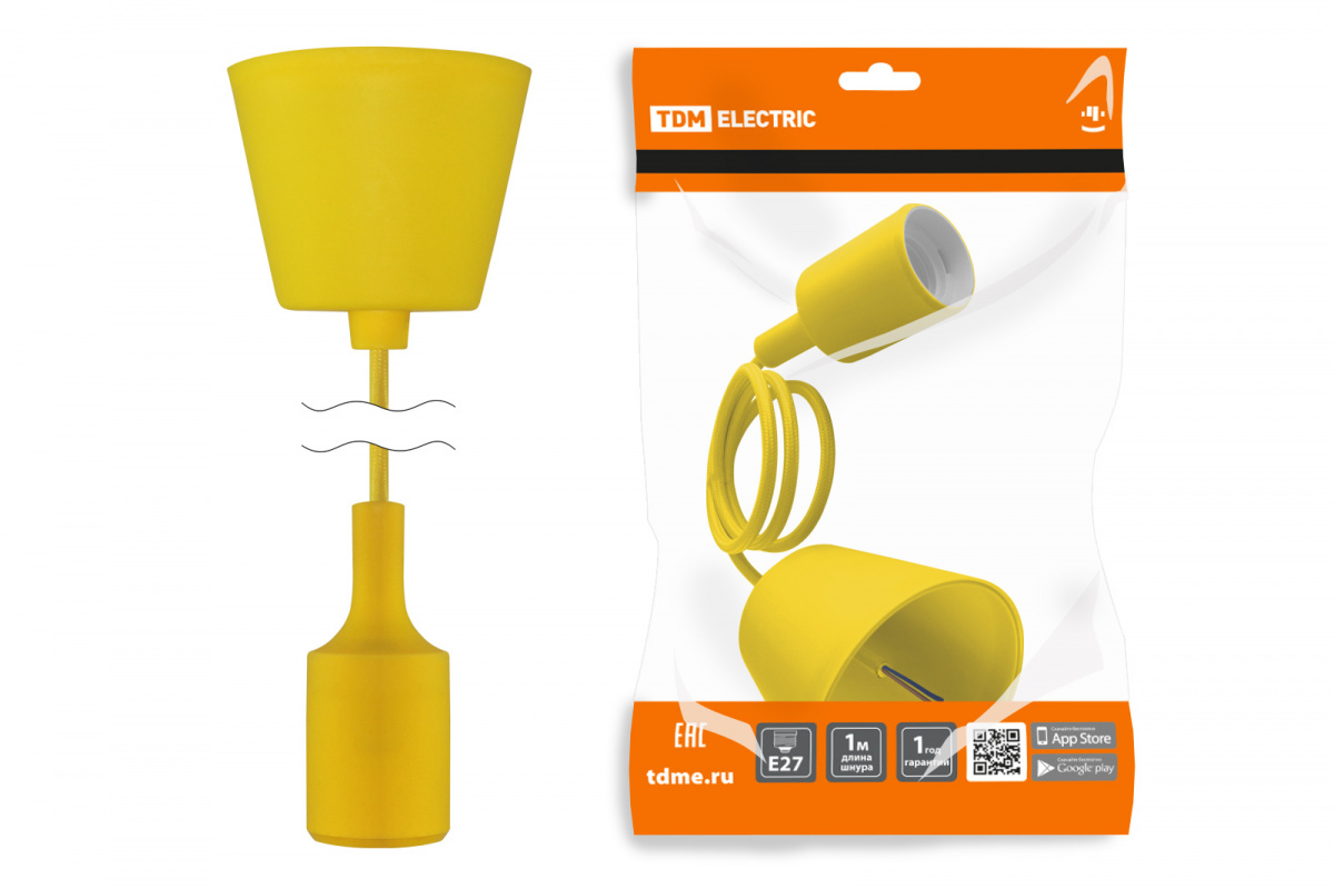 - Патрон TDM пластиковый Е27 с подвесом 1 м, желтый (1/60) (SQ0335-0065)
