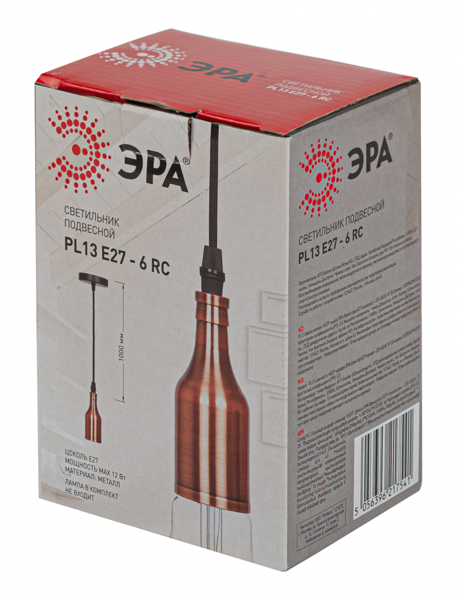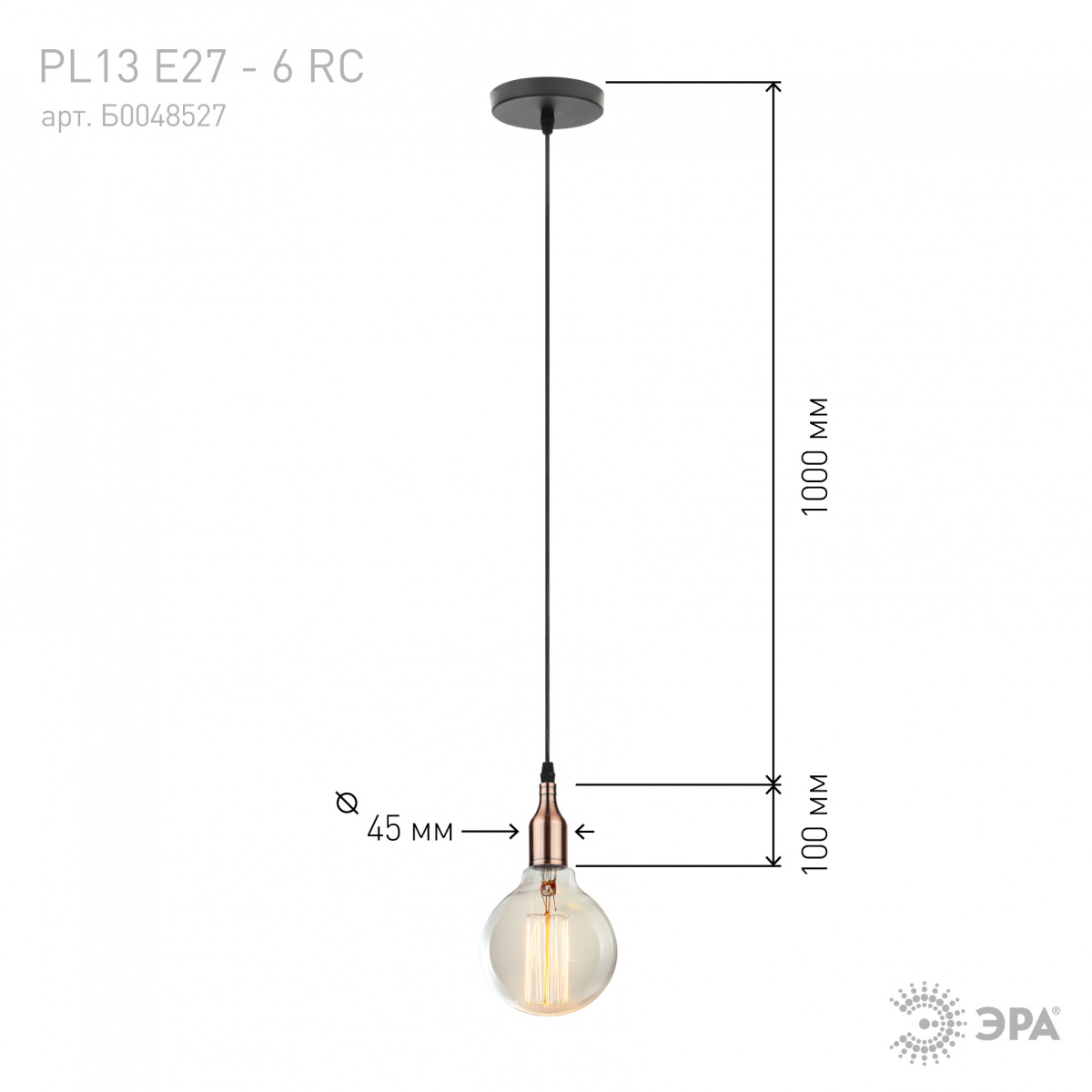 - Cветильник ЭРА PL13 E27 - 6 RC подвес потолочный LOFT под лампу цоколь Е27 провод 1 м цвет медь (60/360) (Б0048527)