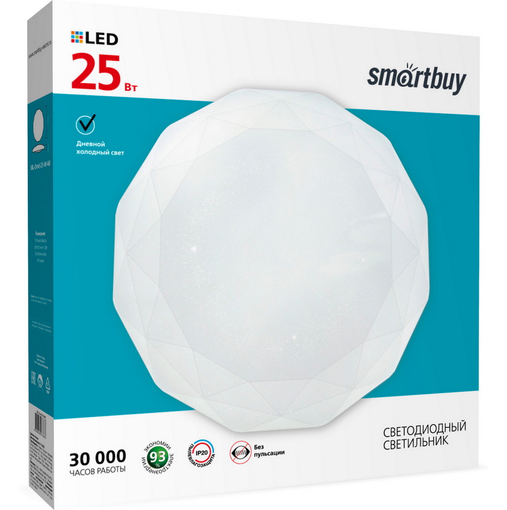 - Светильник светодиодный SMARTBUY потолочный 25W Dimond, 6000К, 2000Лм, 370*60мм (SBL-Dmd-25-W-6K) (1/20)