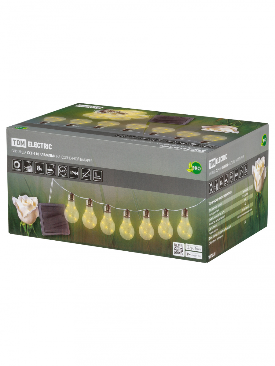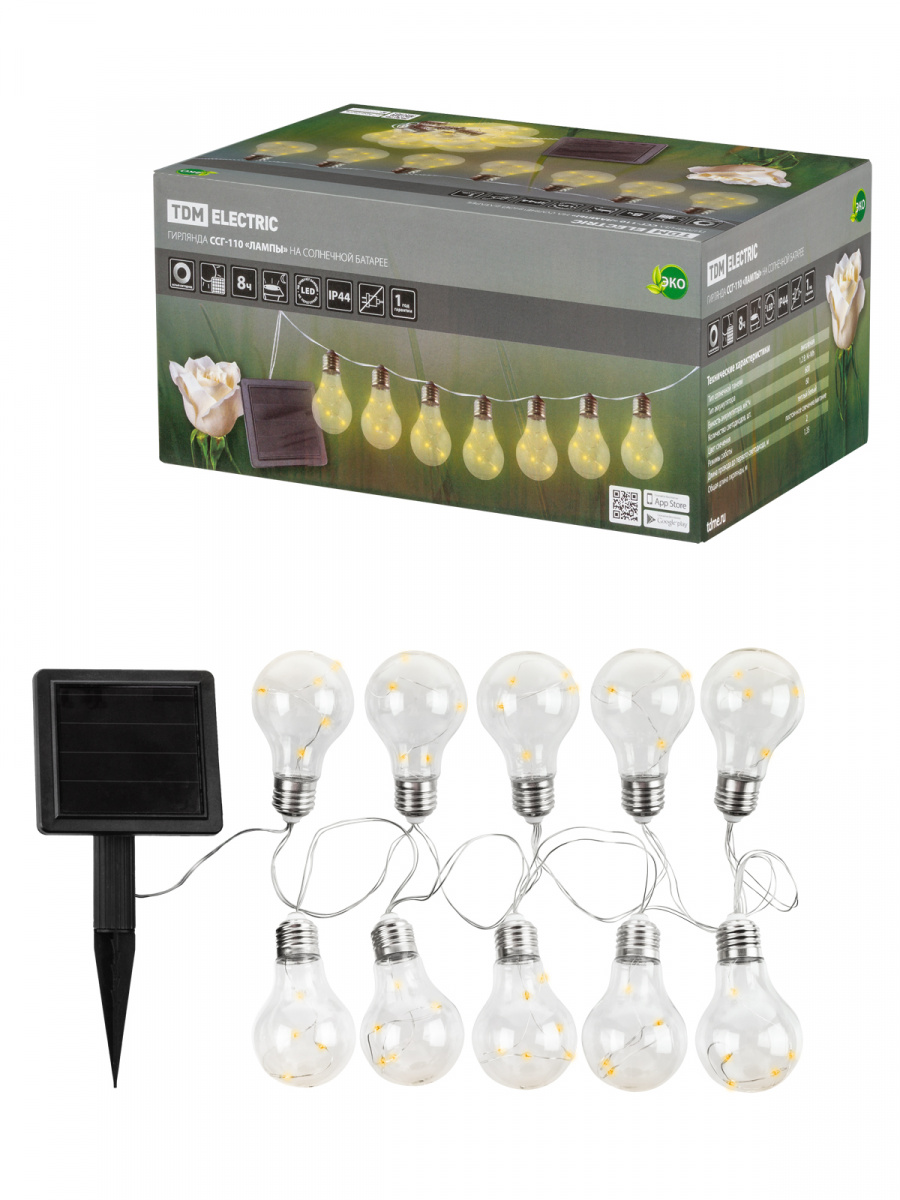 - Гирлянда TDM ССГ-110 "Лампы" на солнечной батарее, 1,3 м, 60 LED, теплый белый, IP44, (1/18) (SQ0330-0181)