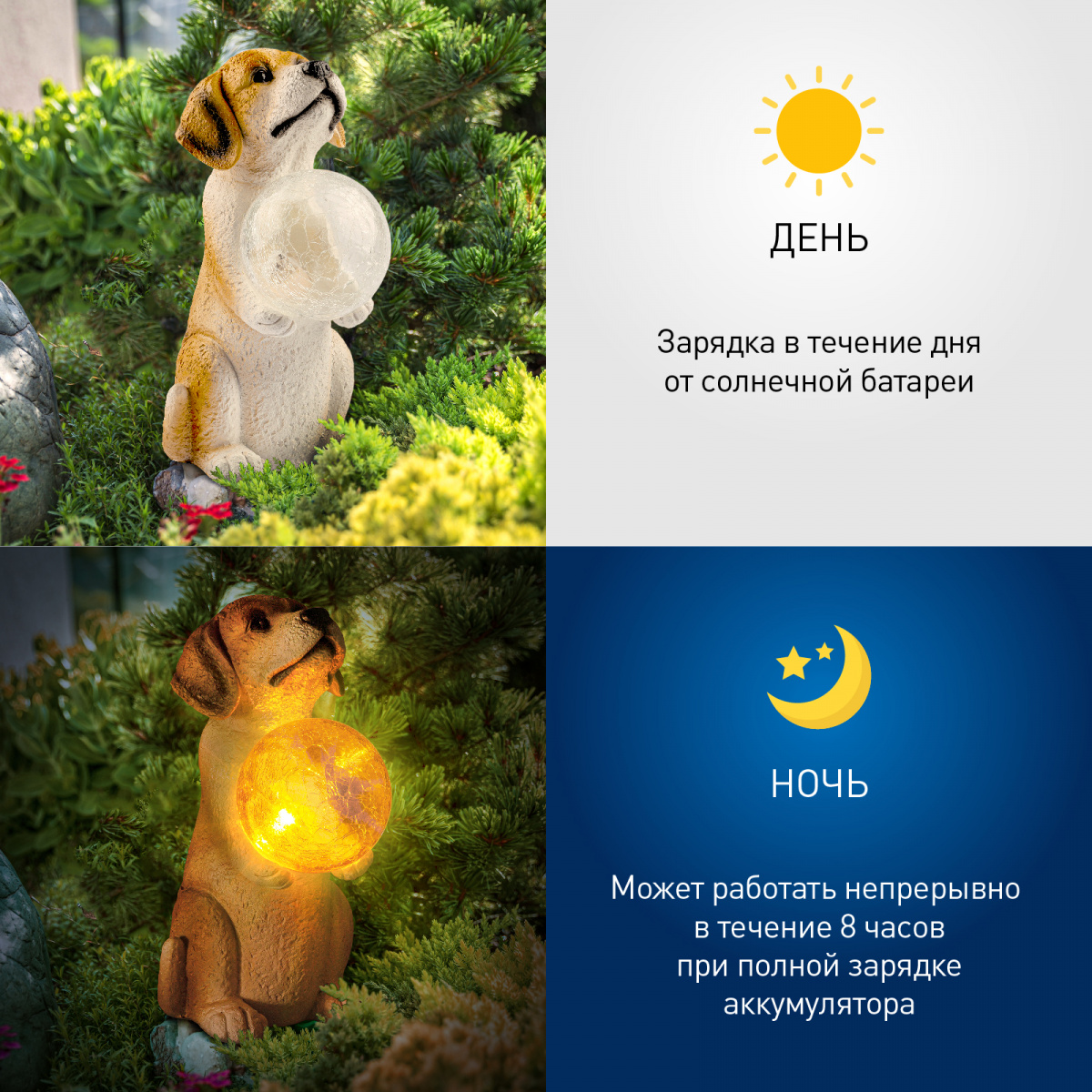 - Светильник ЭРА уличный ERASF22-11 на солнечных батареях садовый Золотистый ретривер щенок 28 см (1/8) (Б0053356)