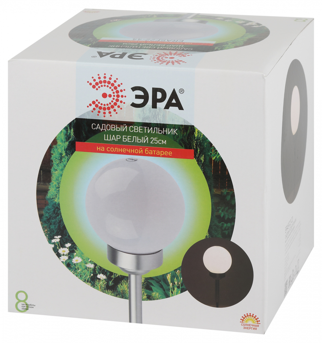 - Светильник ЭРА ERASF22-22 садовый Шар на солнечных батареях садовый 25 см (1/8) (Б0053376)