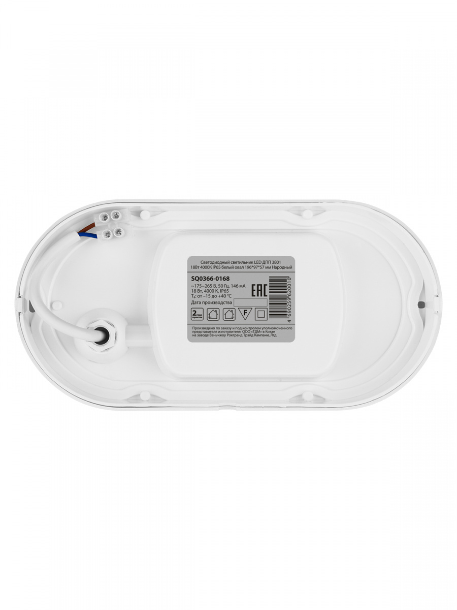 - Светодиодный светильник НАРОДНЫЙ ДПП 3801 18Вт 4000К IP65 белый овал 196*97*57 мм (1/100) (SQ0366-0168)