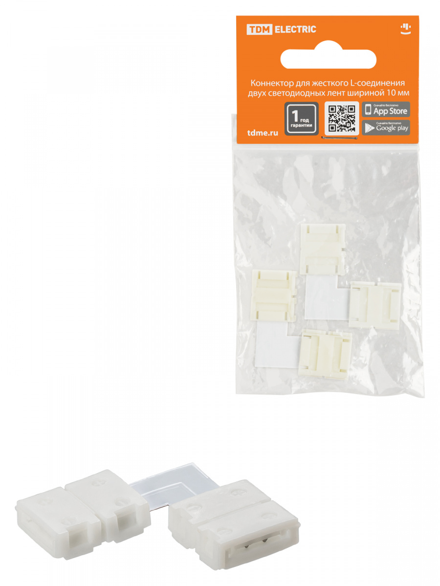 - Коннектор для жесткого L-соединения двух светодиодных лент шириной 10 мм, (уп. 2 шт), TDM (1/300) (SQ0331-0412)
