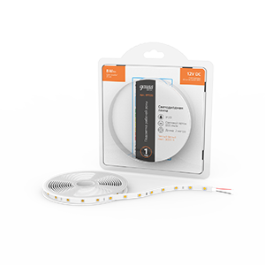 - Лента светодиодная GAUSS Basic 5050/60 12V 8W/m 800lm/m 3000K 10mm IP20 2m 1/100 (BT020)