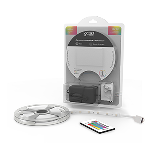- Комплект светодиодной ленты GAUSS Basic 5050/30 12V 6W/m 390lm/m RGB 10mm IP20 5m 1/50 (BT012)