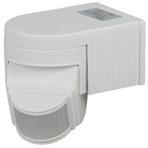 - Датчик движения ЭРА MD 012 белый, макс. нагрузка 1100Вт, угол обзора 180град., дальность 12м, IP44 (1/50) (Б0043789)
