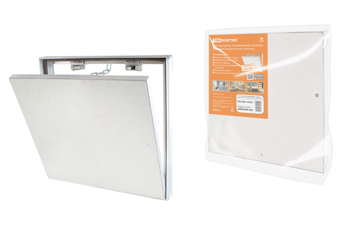 - Люк под плитку, алюминиевый, съемный, нажимной, ограничитель-цепочка, 200х300, TDM (1/1) (SQ1807-0601)