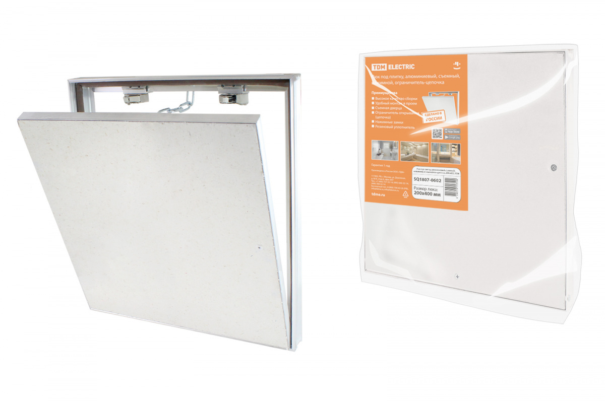- Люк под плитку, алюминиевый, съемный, нажимной, ограничитель-цепочка, 200х400, TDM (1/1) (SQ1807-0602)