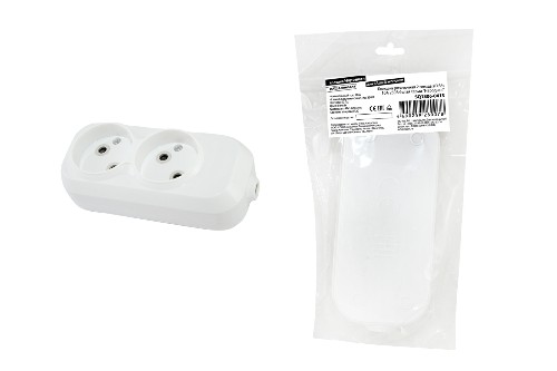 - Колодка розеточная 2 гнезда 2П б/з 10А 250В белая серии "Народная" (1/10/100) (SQ1806-0413)