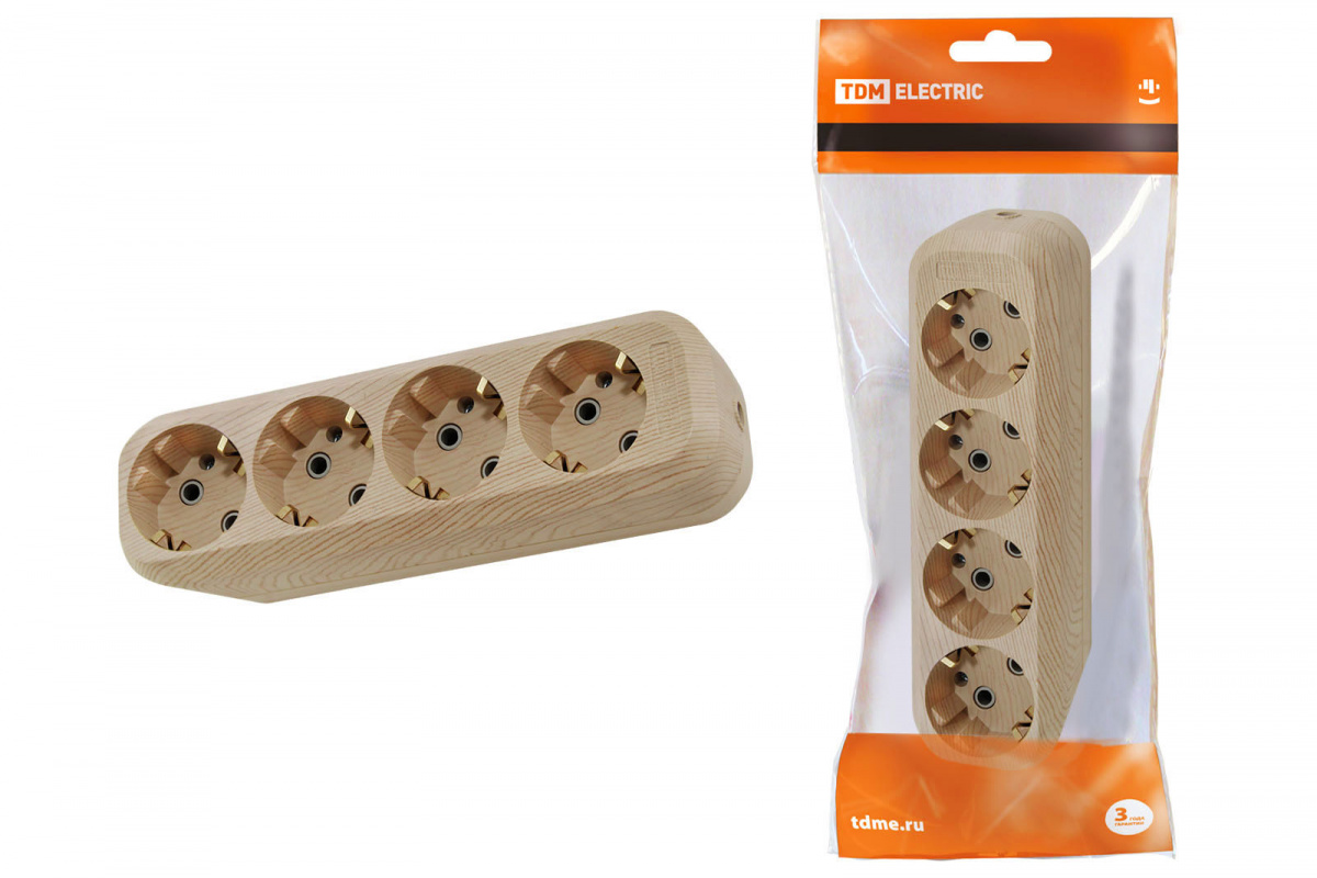 - Колодка розеточная 4 гнезда 2П+3 16А 250В "Эко" (сосна) TDM (1/120) (SQ1806-0051)