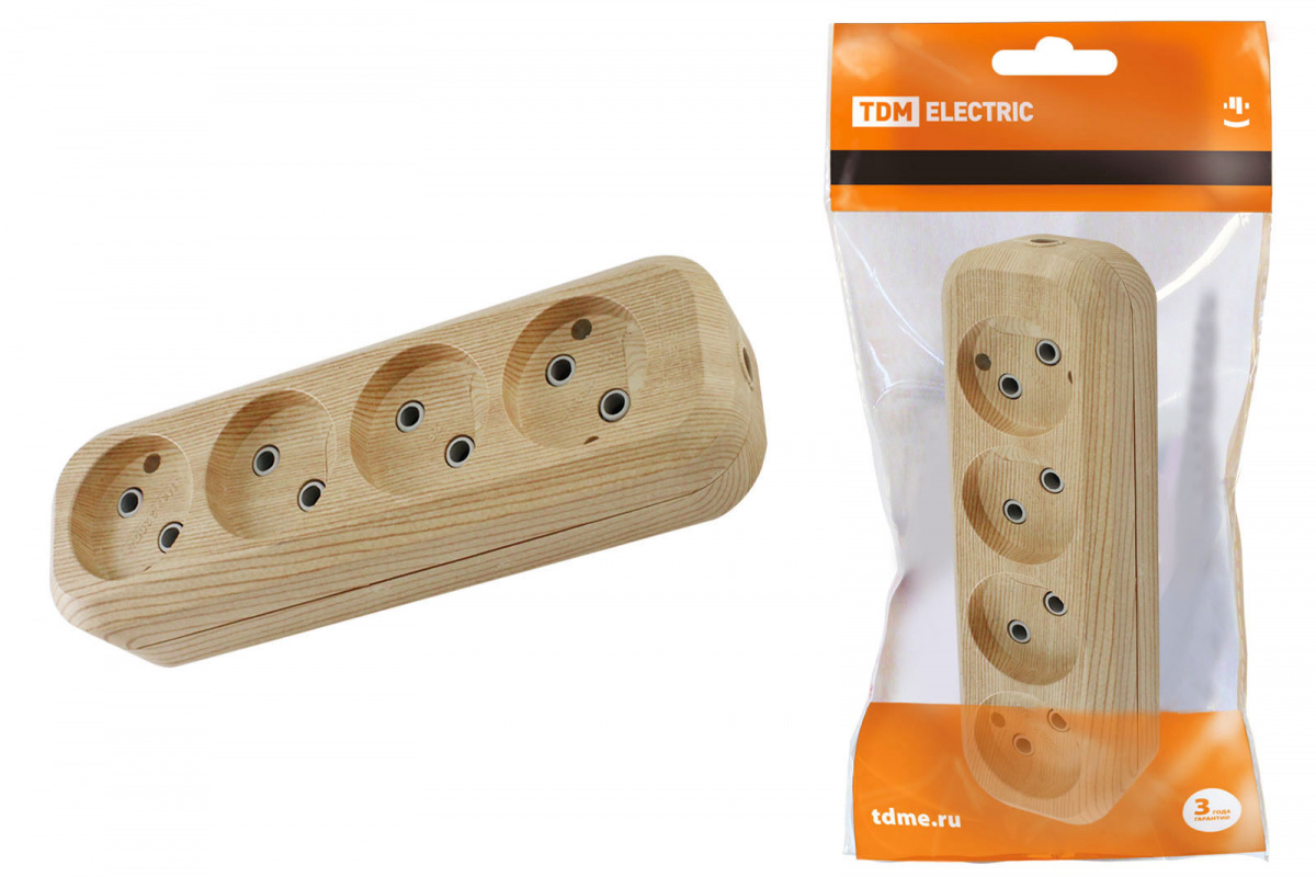 - Колодка розеточная 4 гнезда 2П б/з 10А 250В "Эко" (сосна) TDM (1/20/120) (SQ1806-0050)