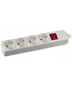 - Колодка розеточная ЭРА 4 гнезда 16А/3500Вт с заземлением выключатель (KX-4es) (1/20/960) (Б0028344)