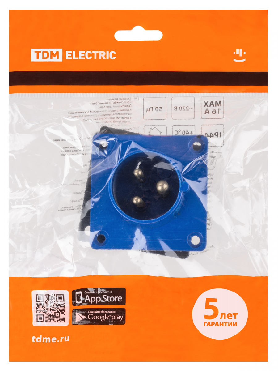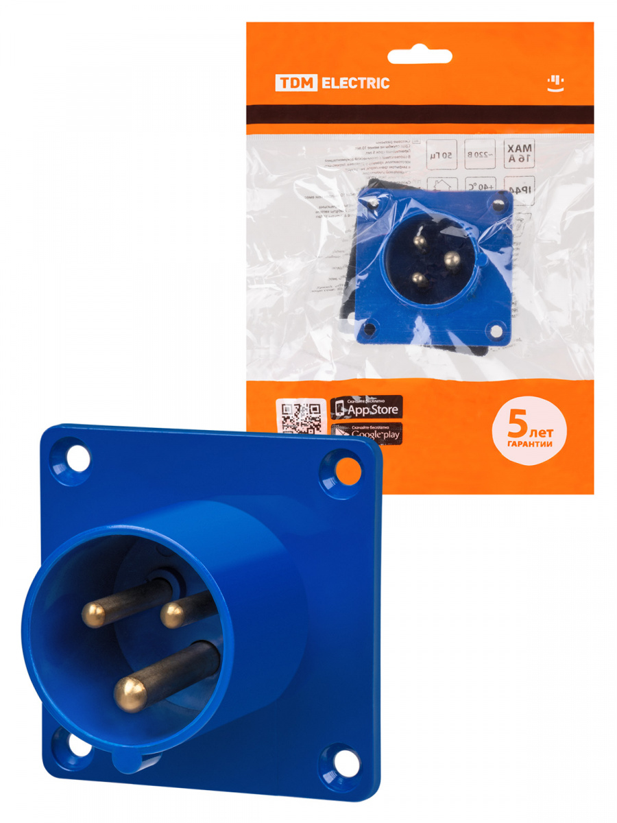 - Вилка 613 скрытая 2Р+РЕ 16А 220В IP44 TDM (20/120) (SQ0607-0001)