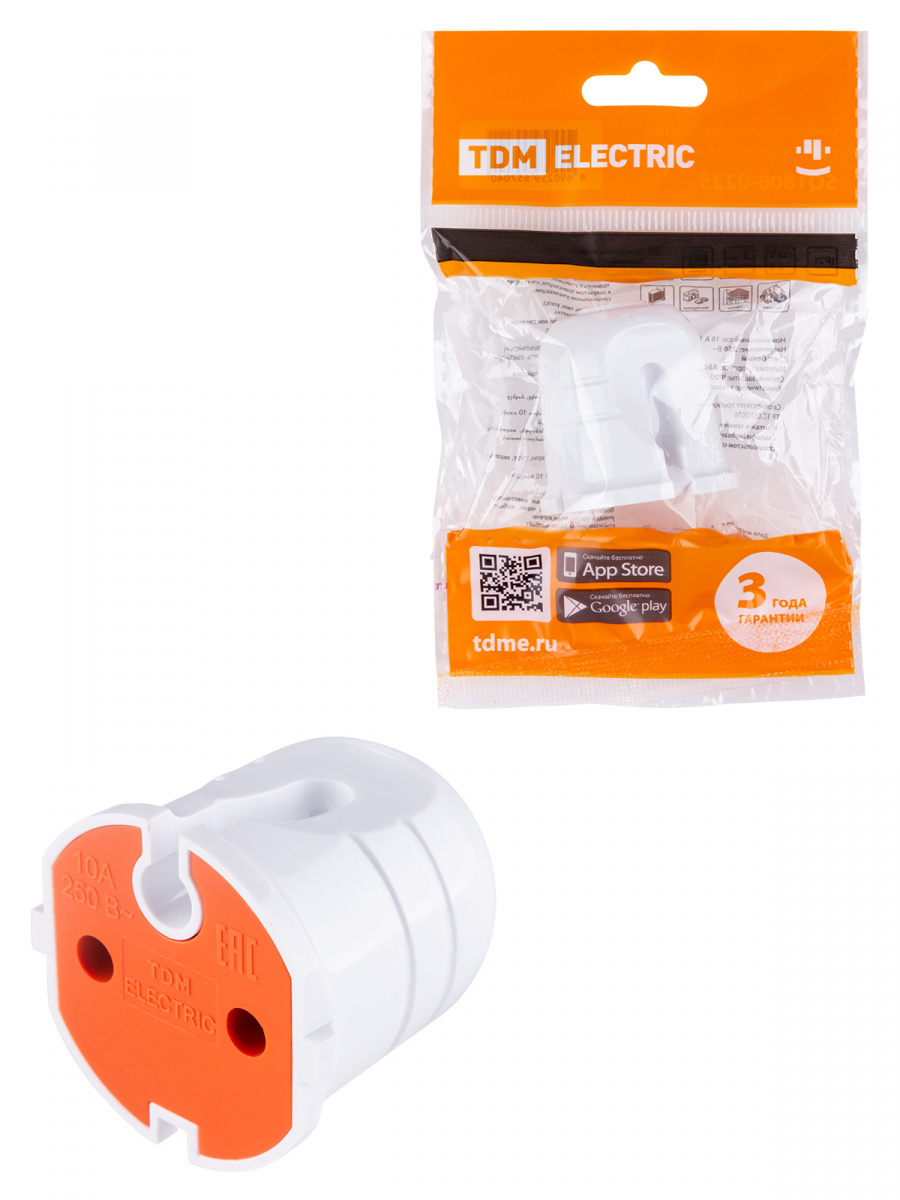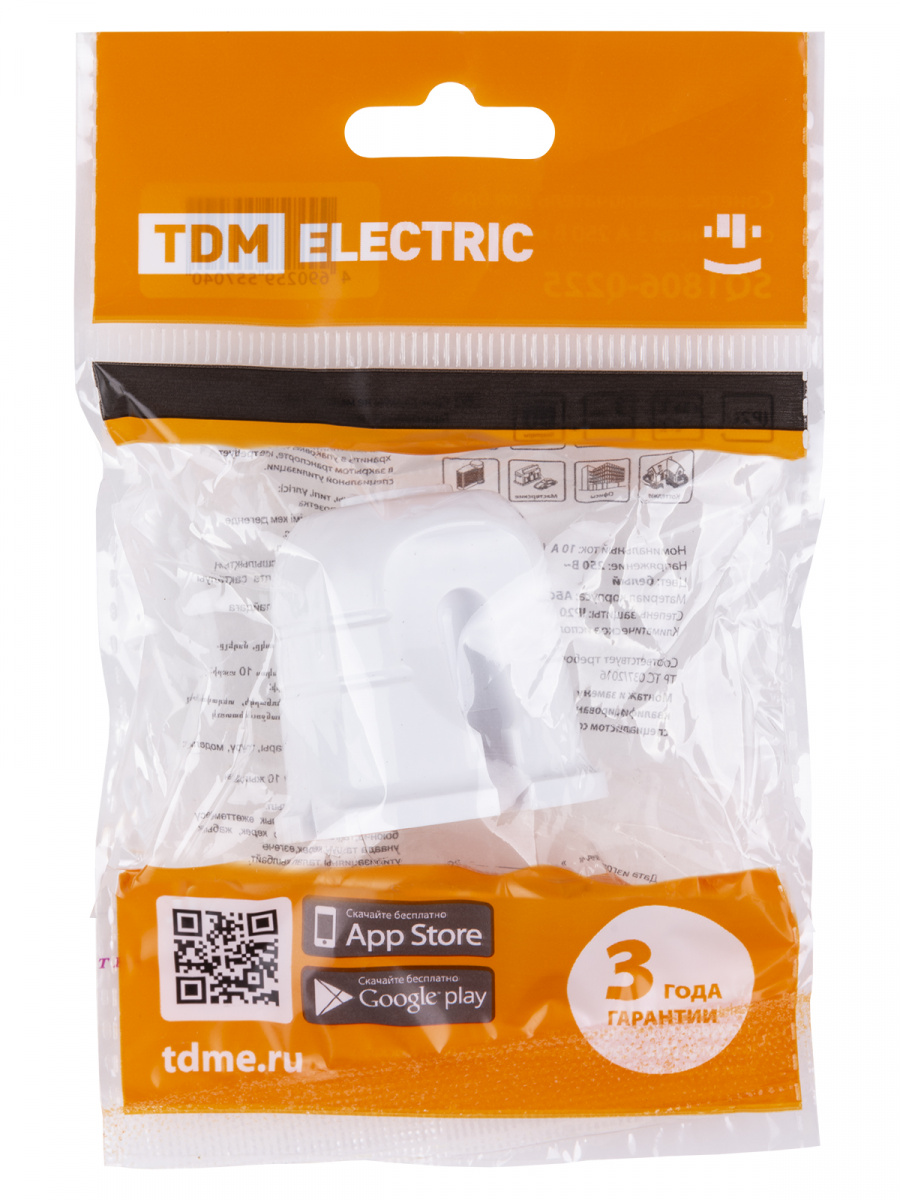 - Кабельная розетка б/з белая с красной вставкой 10А 250B белая TDM (48/720) (SQ1806-0213)