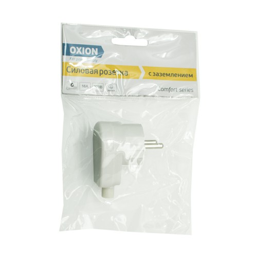 - Вилка угловая в розетку с заземлением OXION Comfort (1/100) (OX-PLUNGWH)