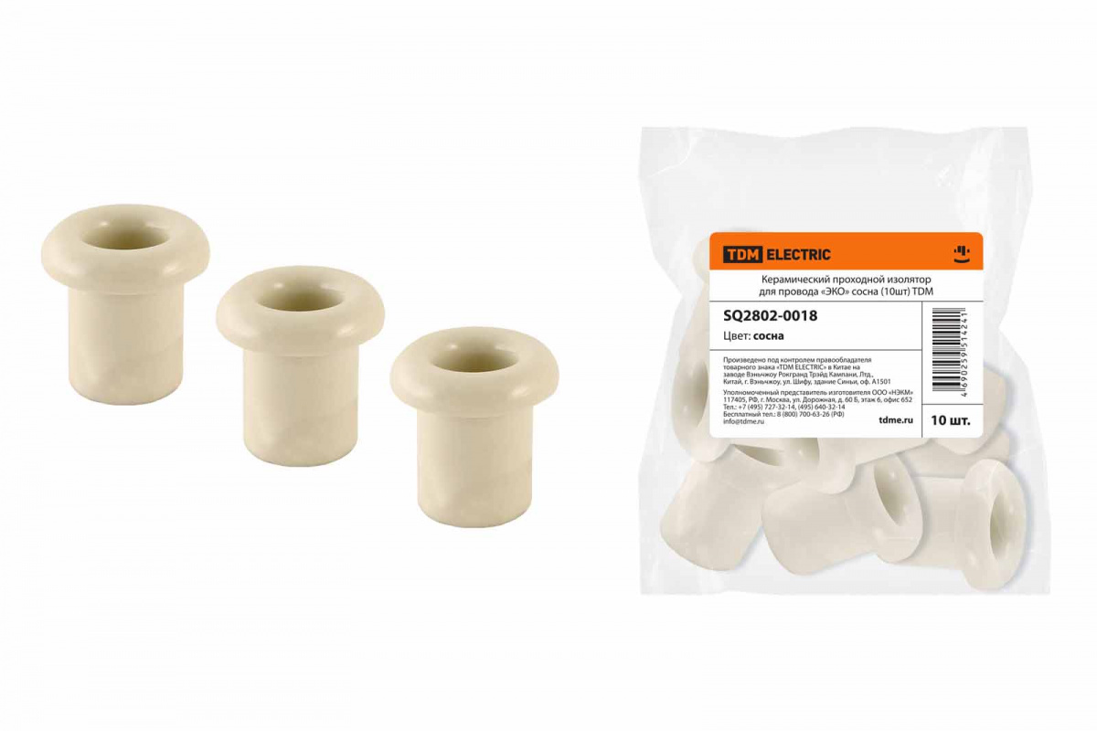 - Изолятор керамический проходной для провода «ЭКО» сосна (10шт) TDM (10/750) (SQ2802-0018)