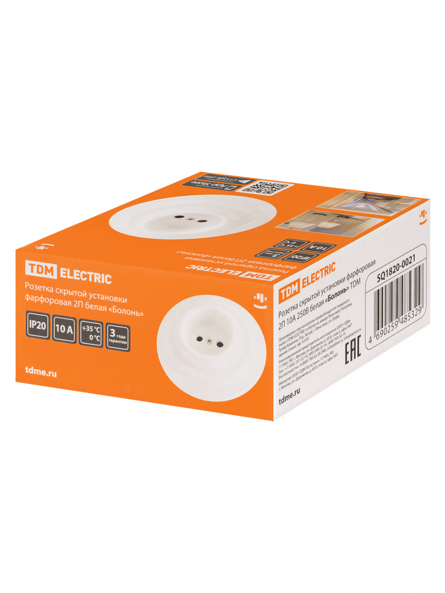 - Розетка скрытой установки фарфоровая 2П 10А 250В белая «Болонь» TDM (1/36) (SQ1820-0021)