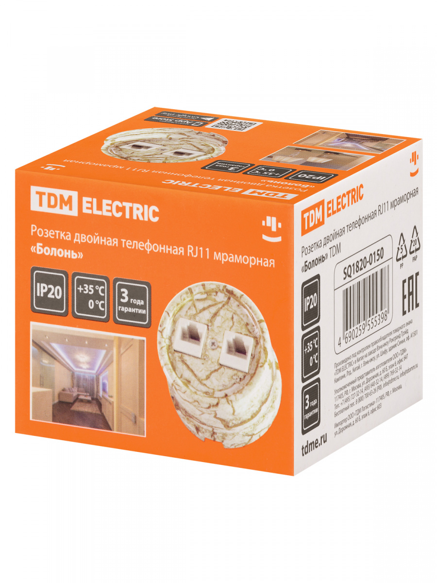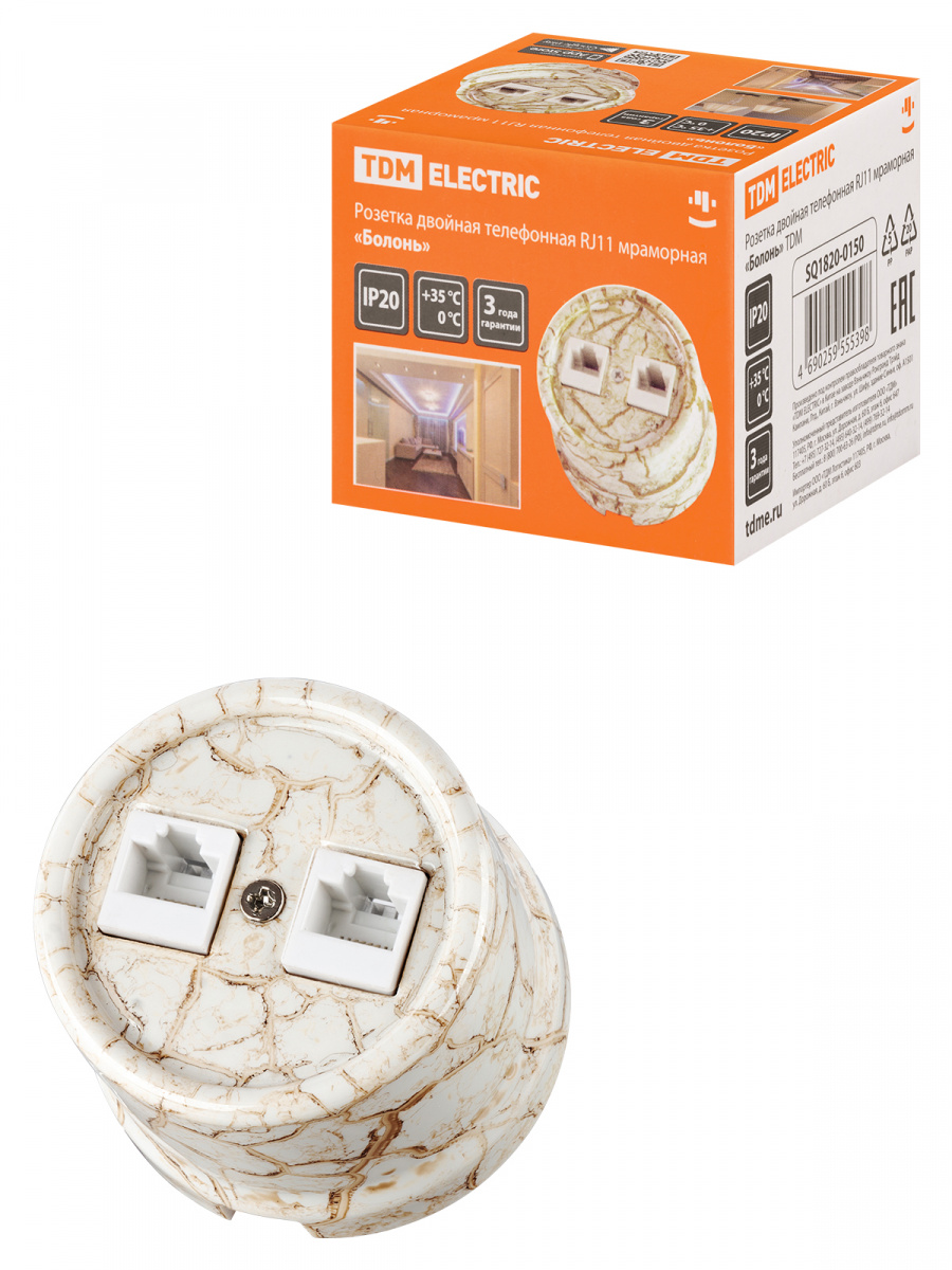- Розетка TDM двойная телефонная RJ11 мраморная «Болонь» (1/72) (SQ1820-0150)