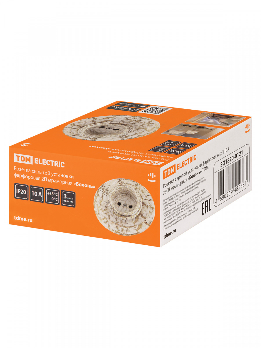 - Розетка TDM скрытой установки фарфоровая 2П 10А 250В мраморная «Болонь» (1/36) (SQ1820-0121)