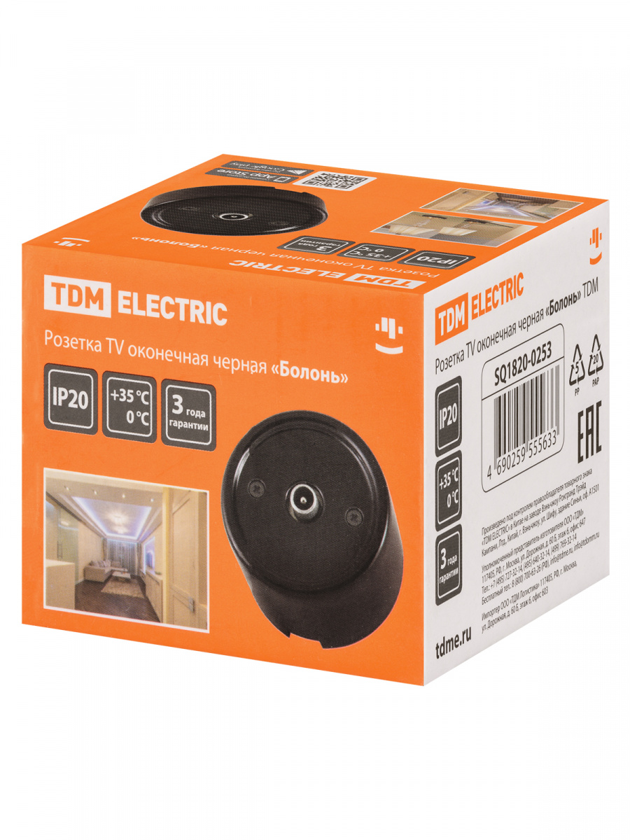 - Розетка TDM TV оконечная черная «Болонь» (1/72) (SQ1820-0253)