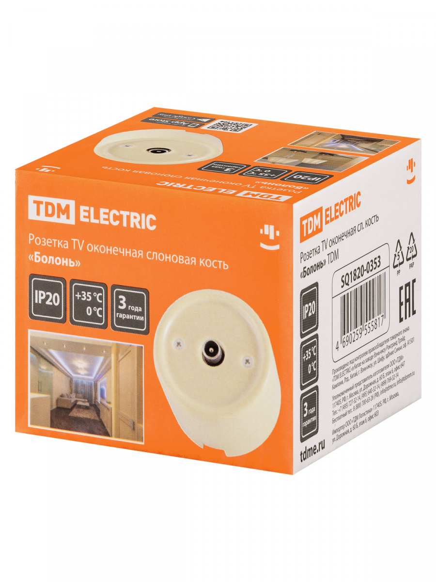 - Розетка TDM TV оконечная сл. кость «Болонь» (1/72) (SQ1820-0353)