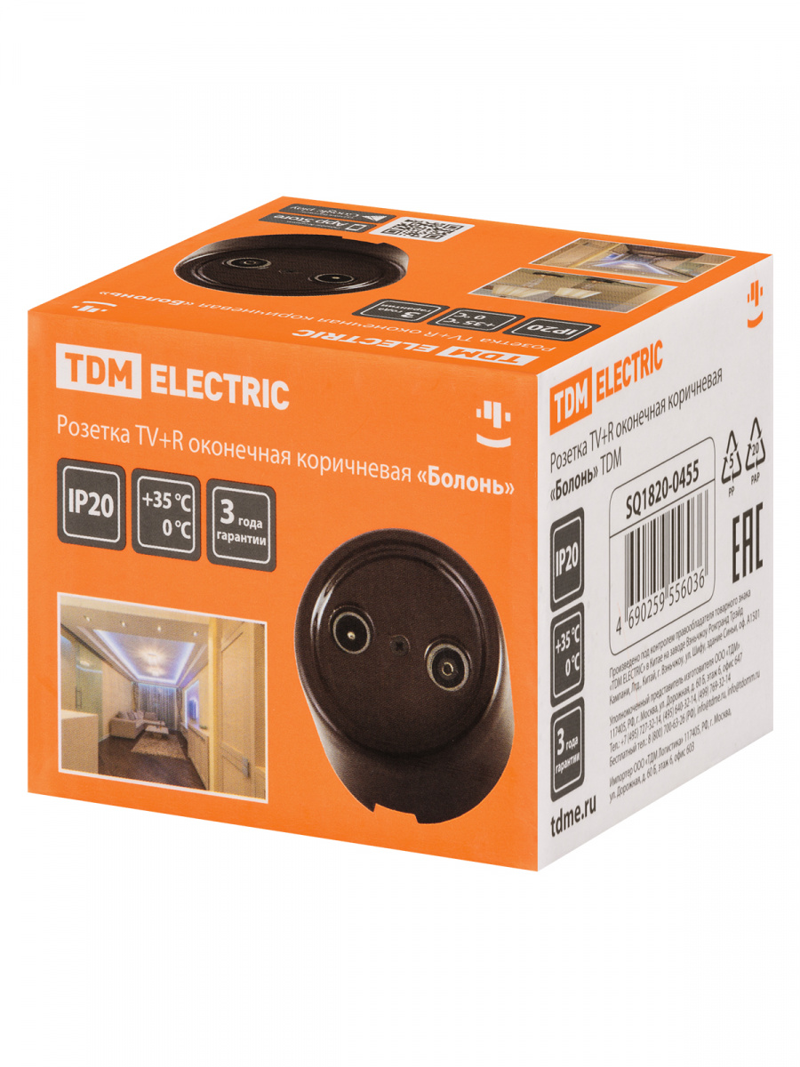 - Розетка TDM TV+R оконечная коричневая «Болонь» (1/72) (SQ1820-0455)