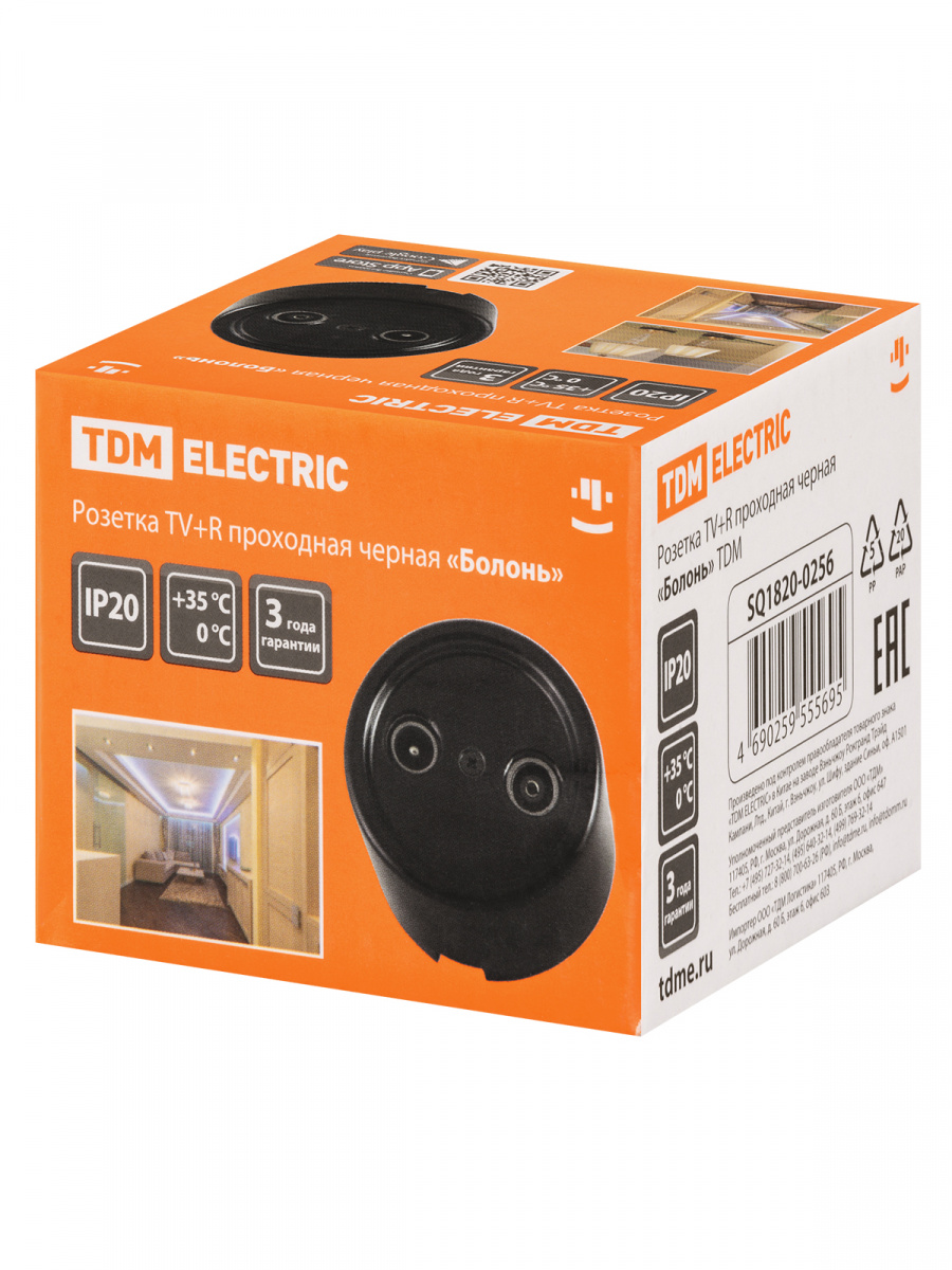 - Розетка TDM TV+R проходная черная «Болонь» (1/72) (SQ1820-0256)