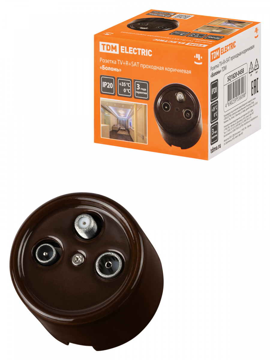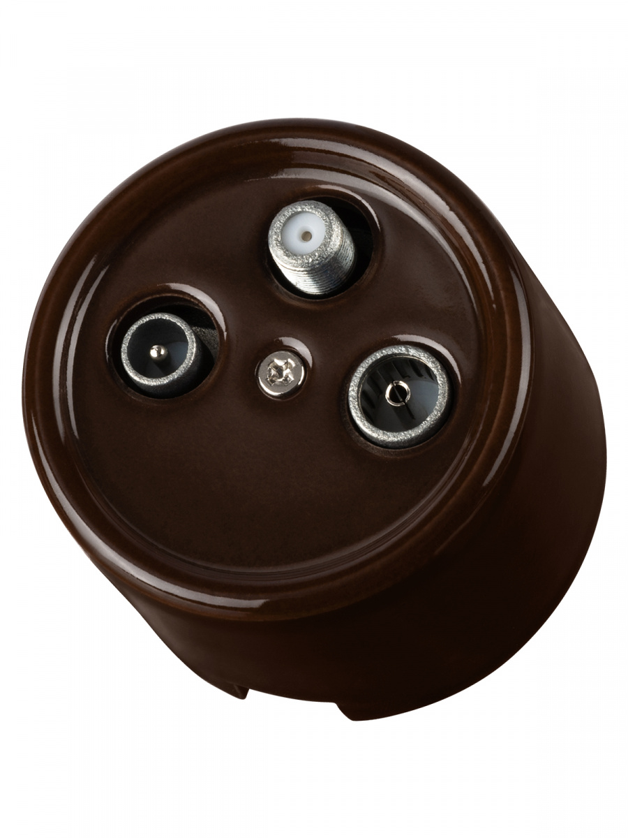 - Розетка TDM TV+R+ SAT проходная коричневая «Болонь» (1/72) (SQ1820-0458)