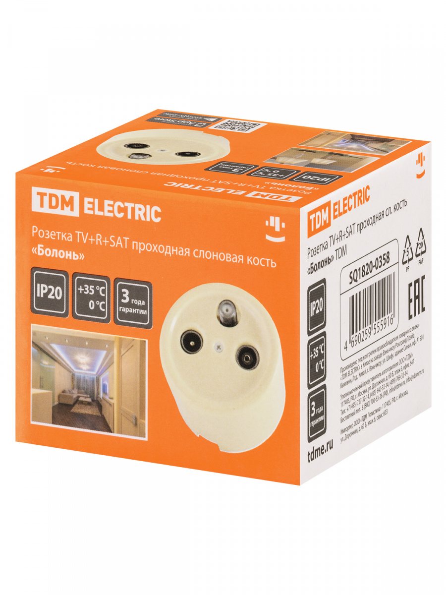 - Розетка TDM TV+R+ SAT проходная сл. кость «Болонь» (1/72) (SQ1820-0358)