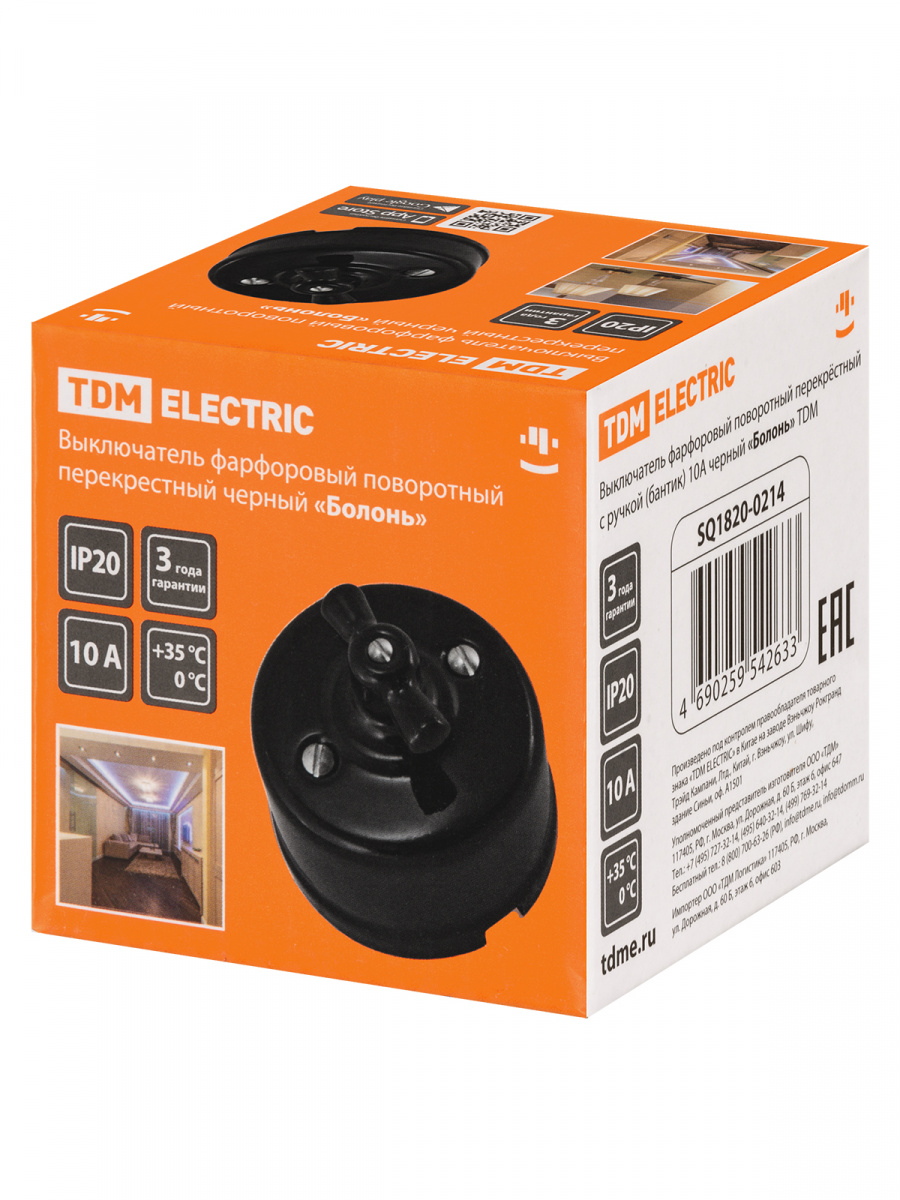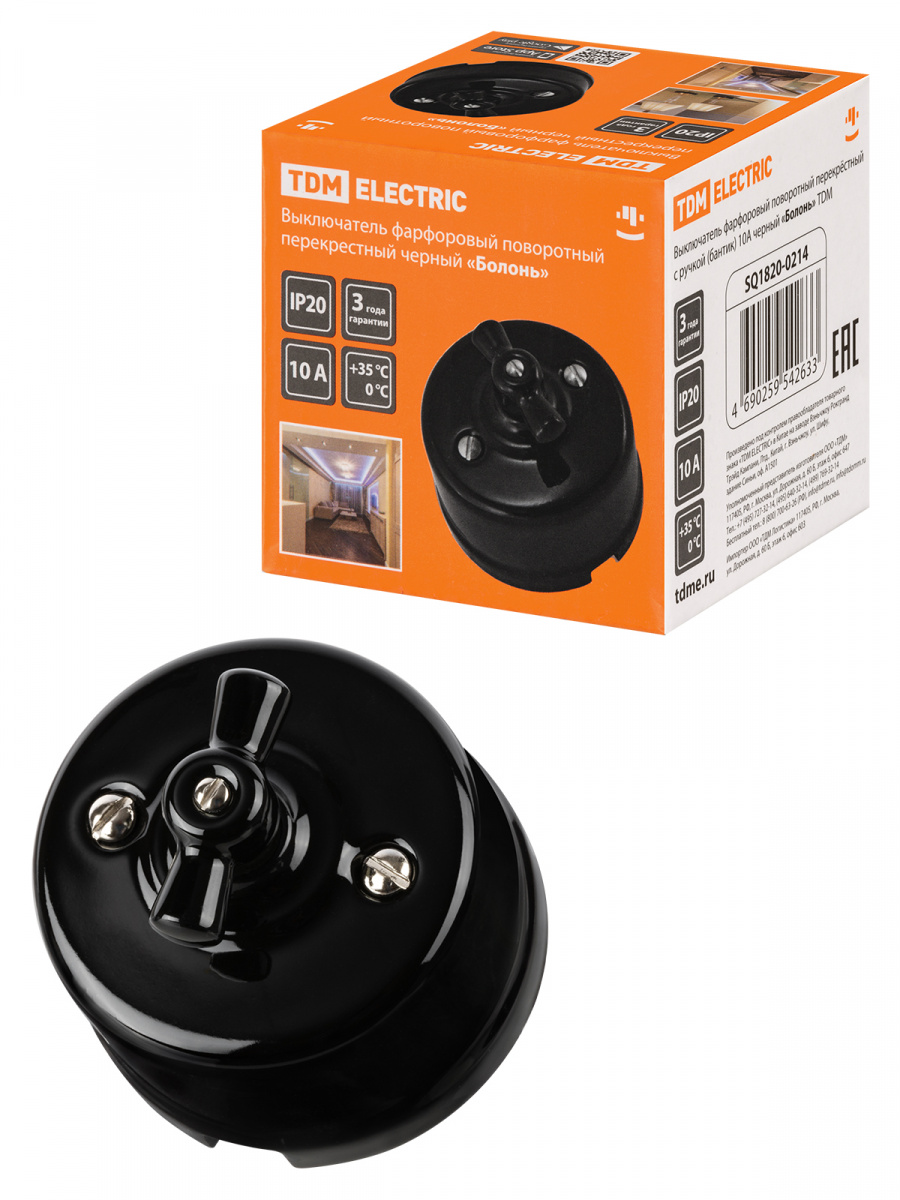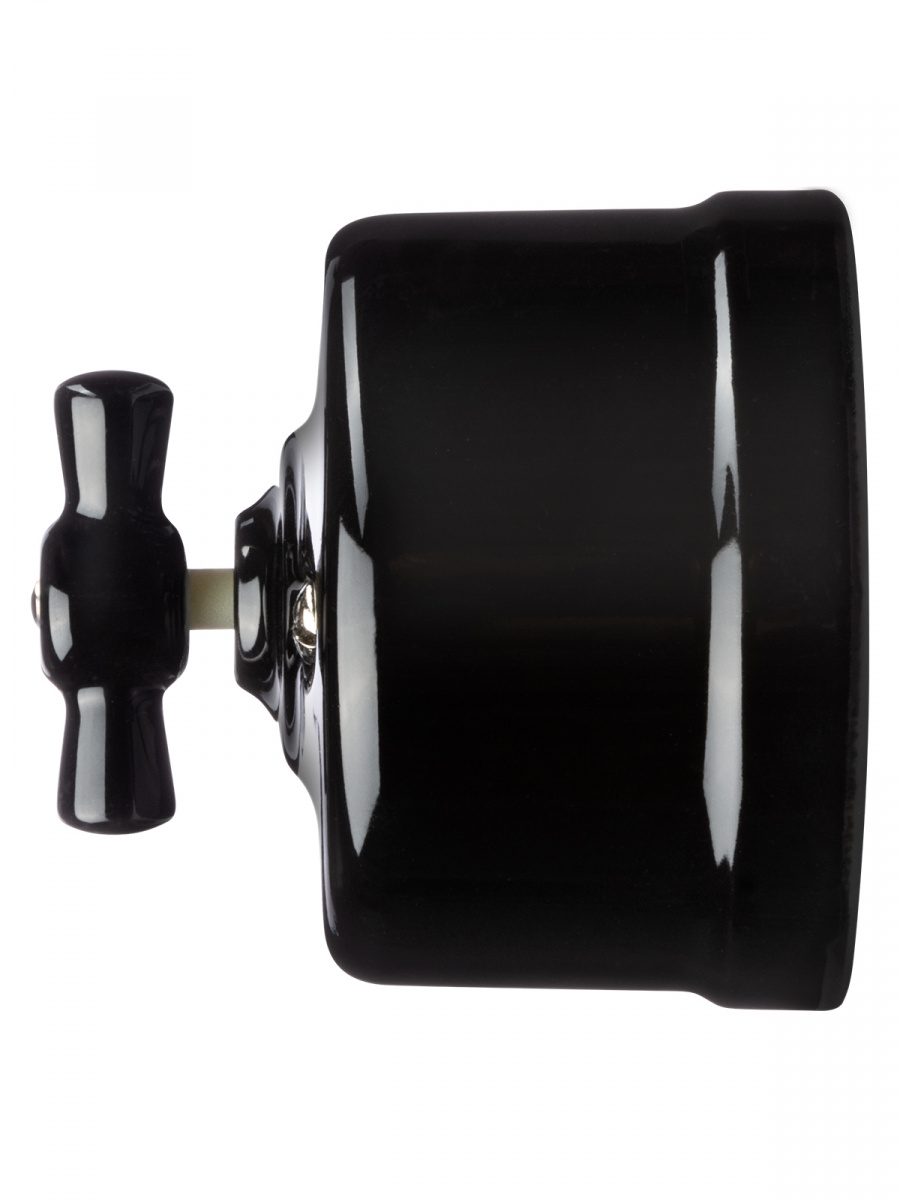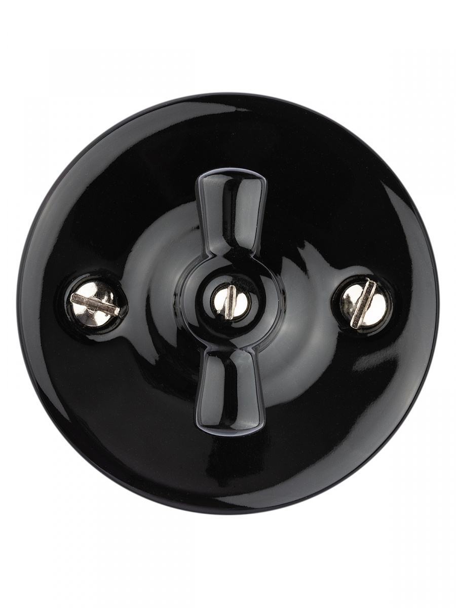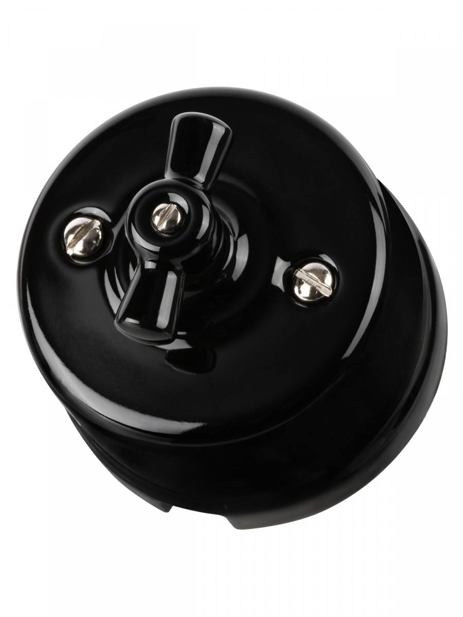 - Выключатель фарфоровый поворотный перекрёстный с ручкой (бантик) 10А черный «Болонь» TDM (1/72) (SQ1820-0214)
