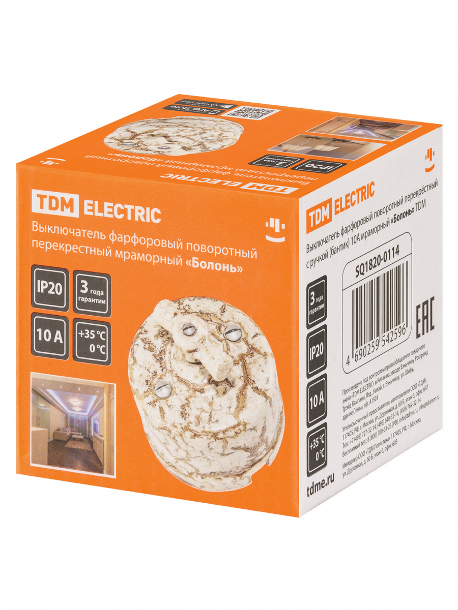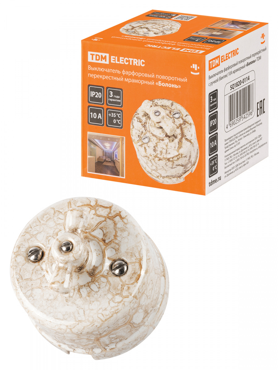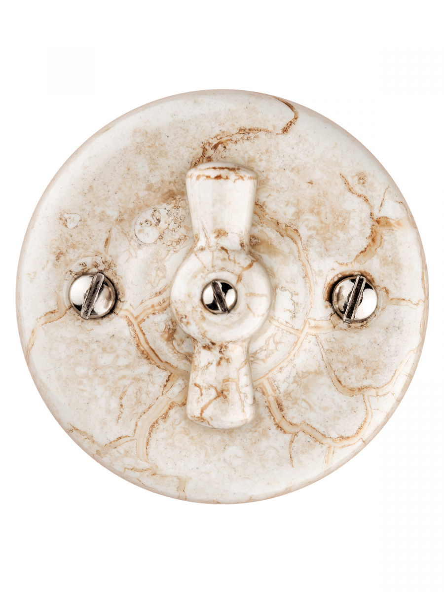 - Выключатель фарфоровый поворотный перекрёстный с ручкой (бантик) 10А мраморный «Болонь» TDM (1/72) (SQ1820-0114)
