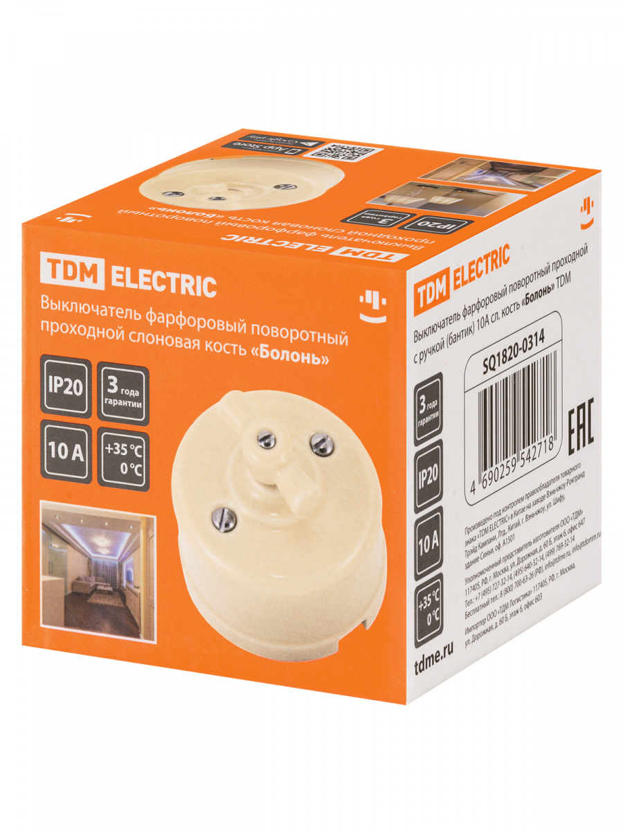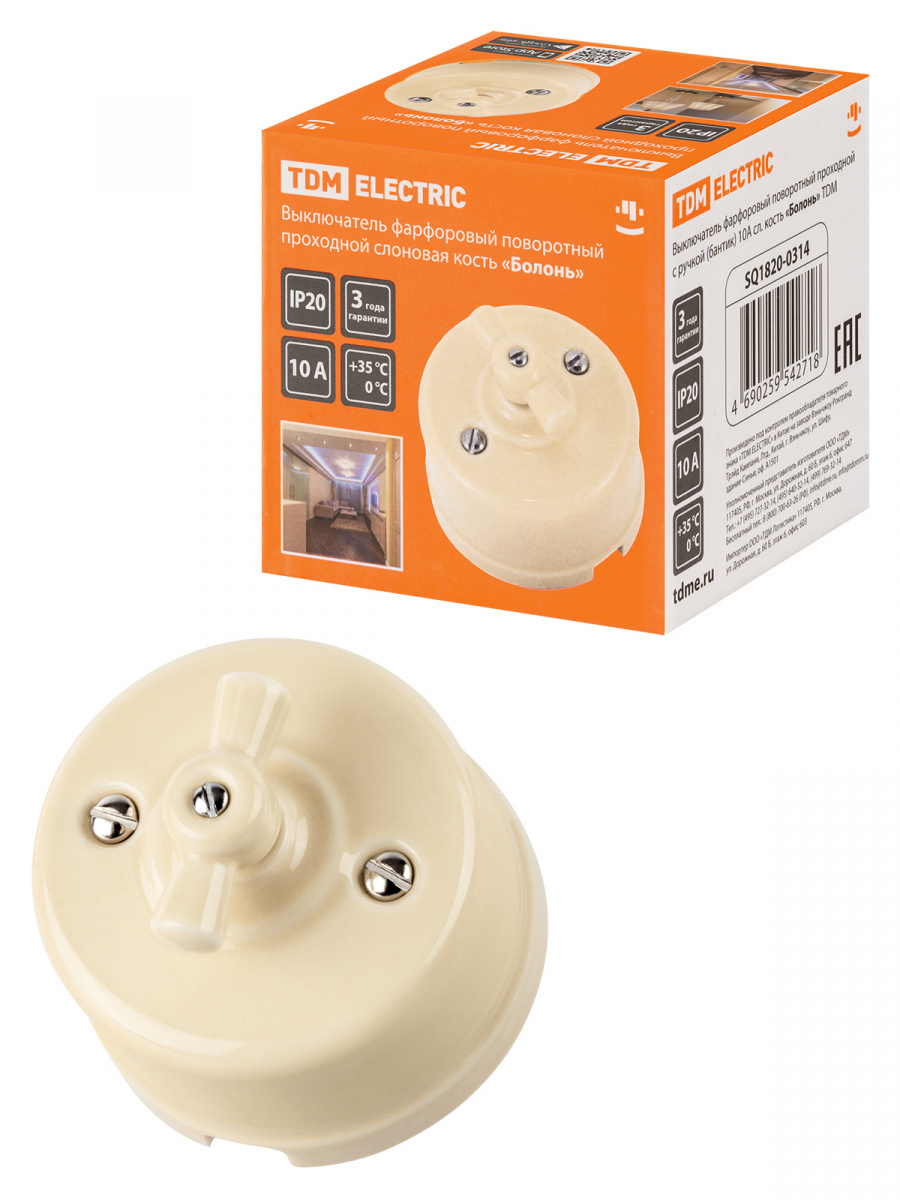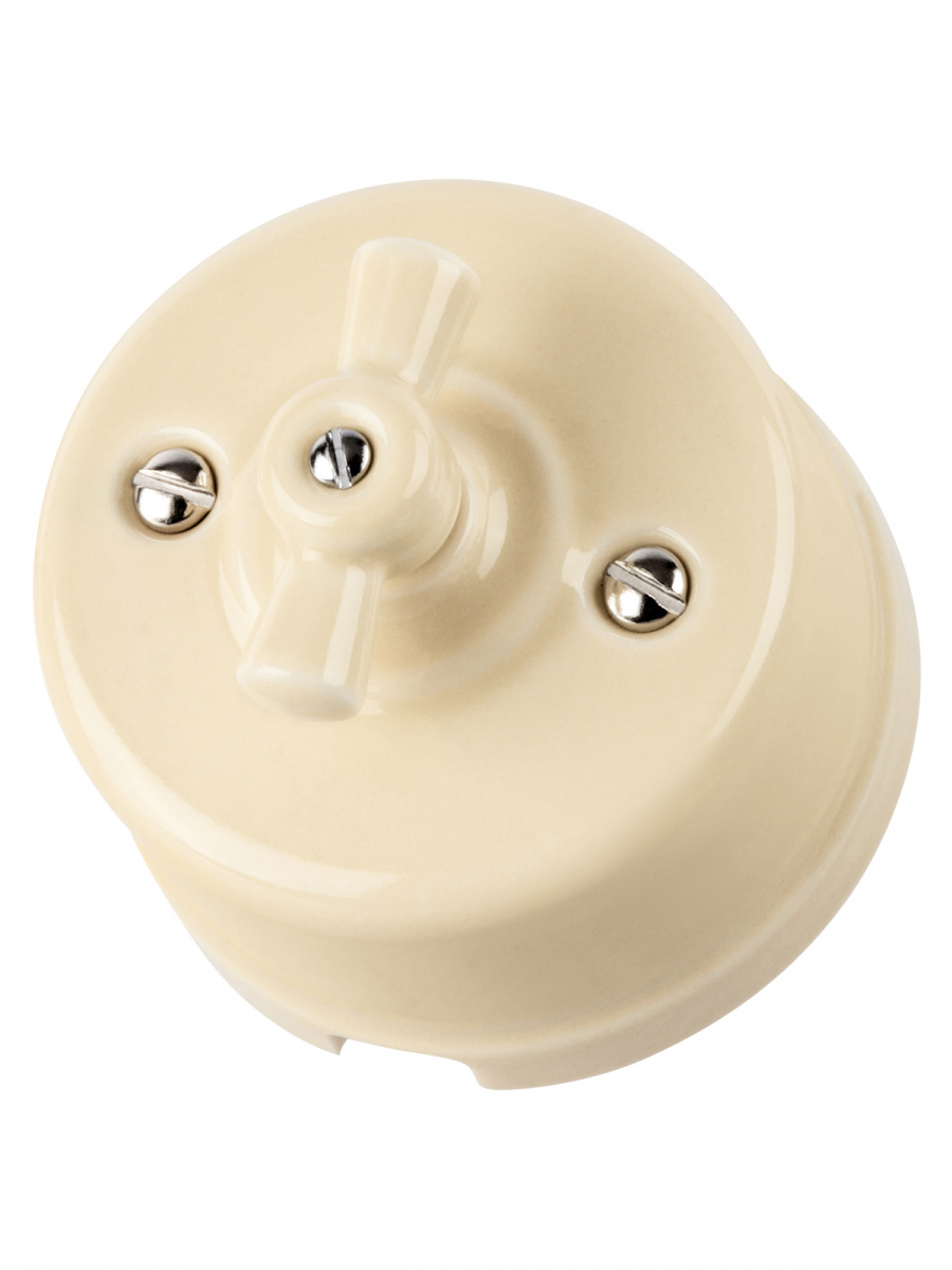 - Выключатель фарфоровый поворотный проходной с ручкой (бантик) 10А сл. кость «Болонь» TDM (1/72) (SQ1820-0314)