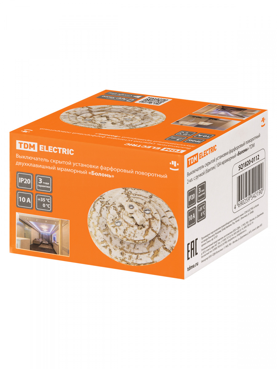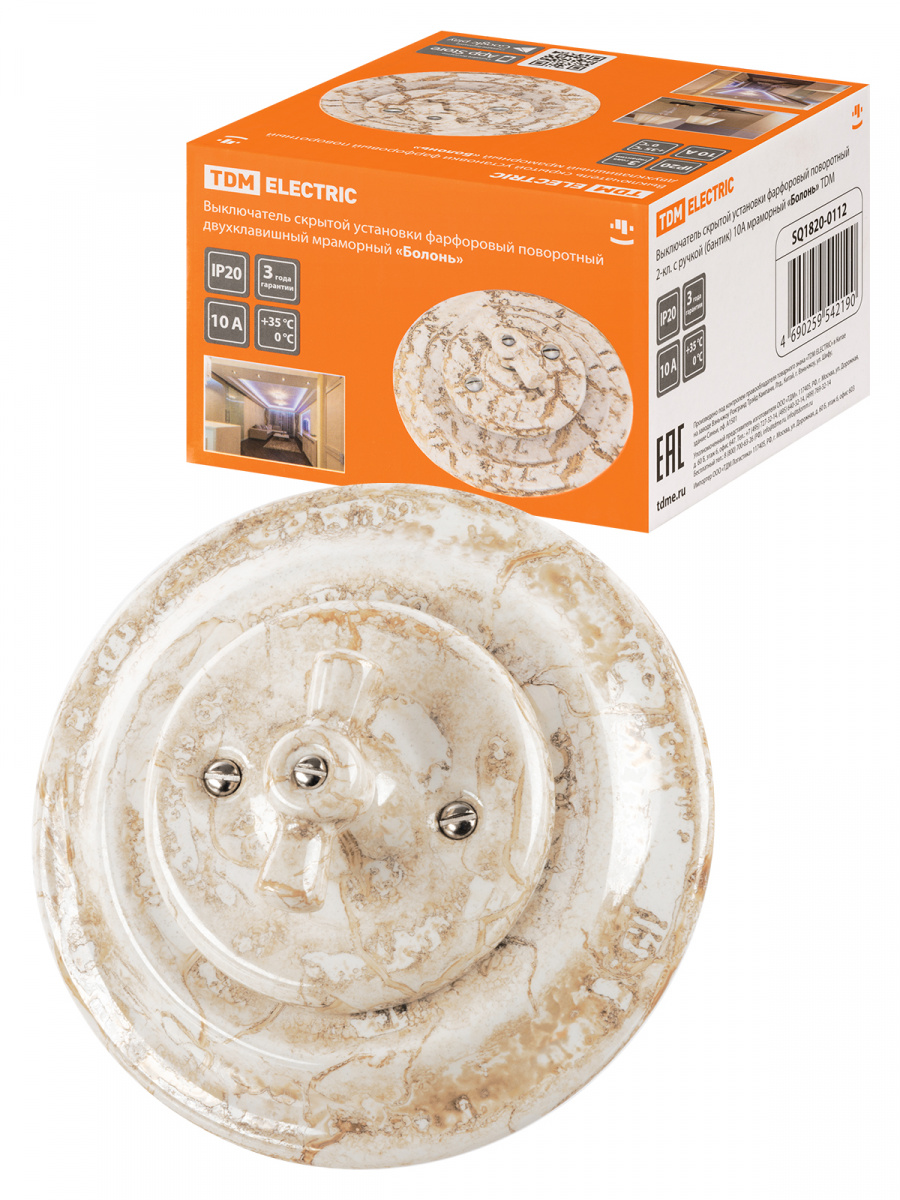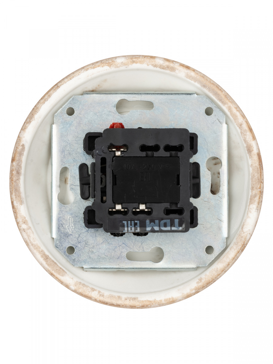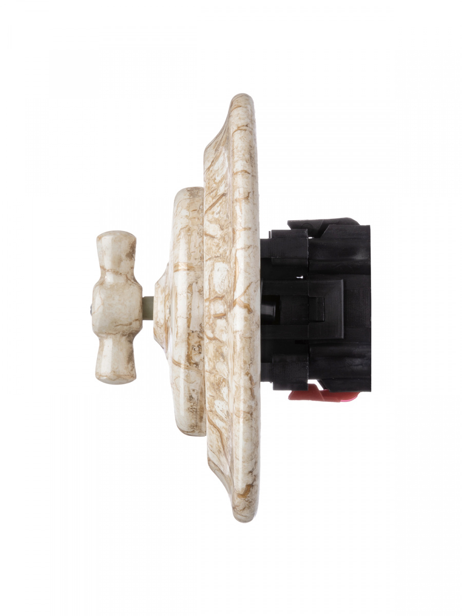 - Выключатель скрытой установки фарфоровый поворотный 2-кл. с ручкой (бантик) 10А мраморный «Болонь» TDM (SQ1820-0112)