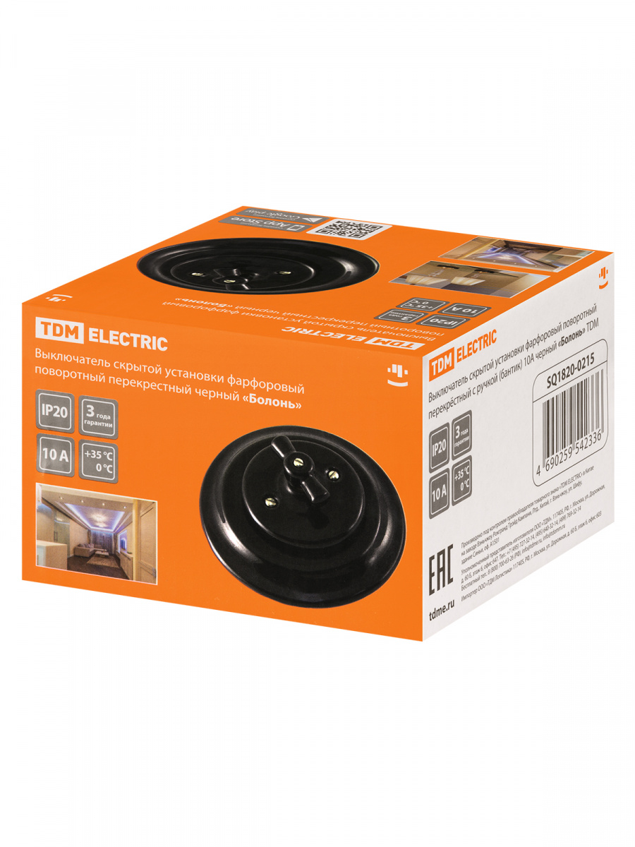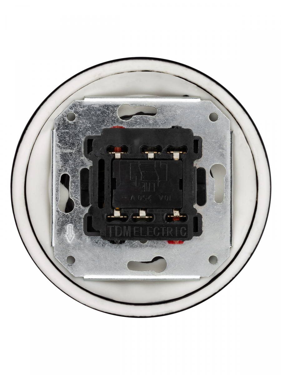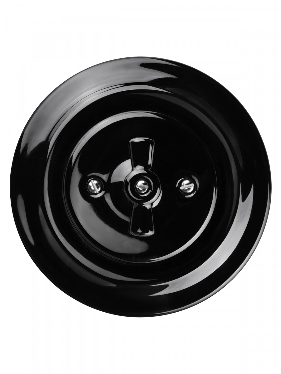 - Выключатель скрытой установки фарфоровый поворотный перекрёстный с ручкой (бантик) 10А черный «Болонь» TDM (SQ1820-0215)