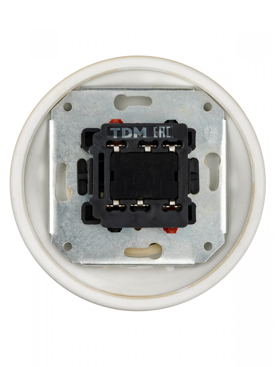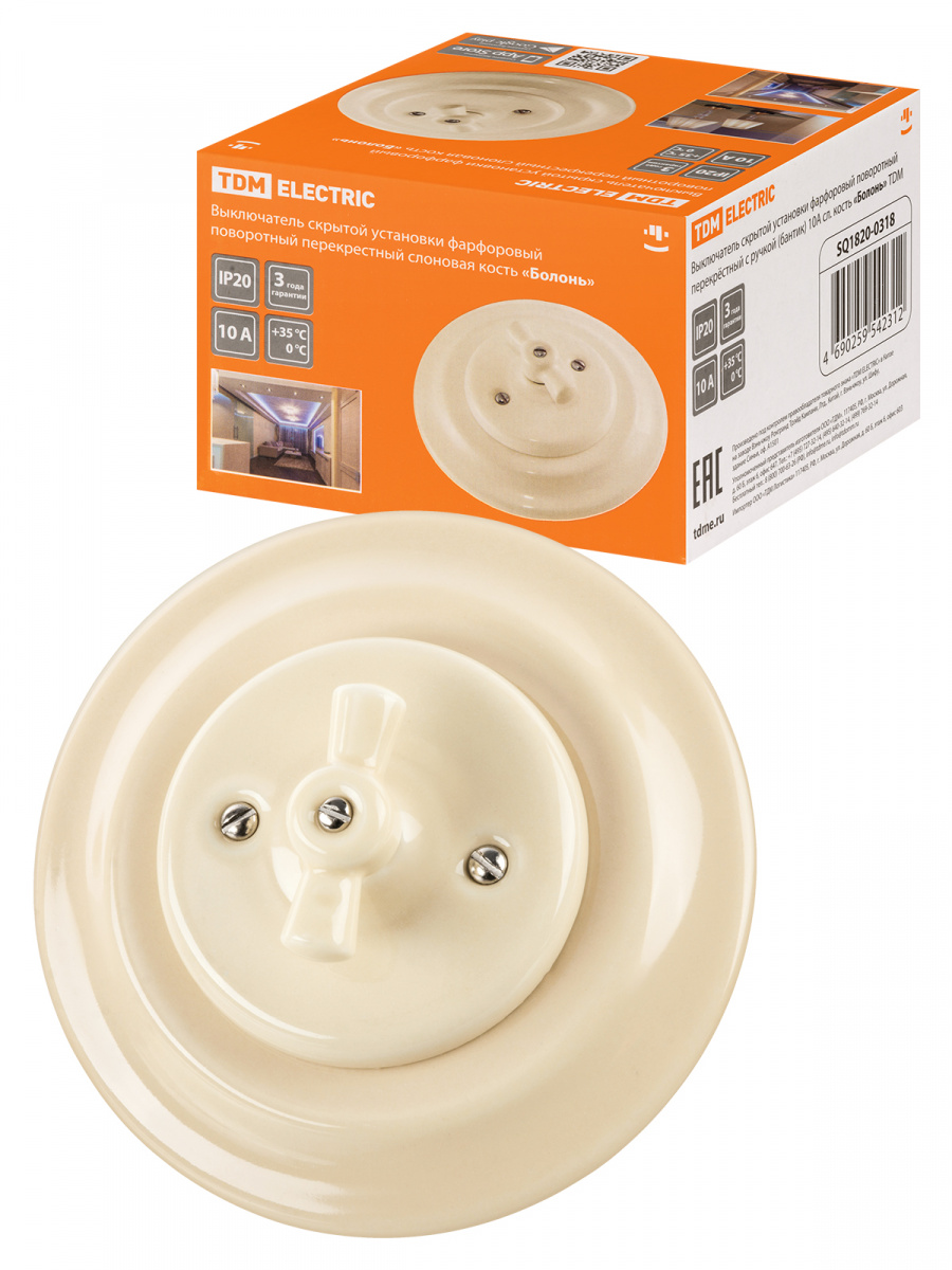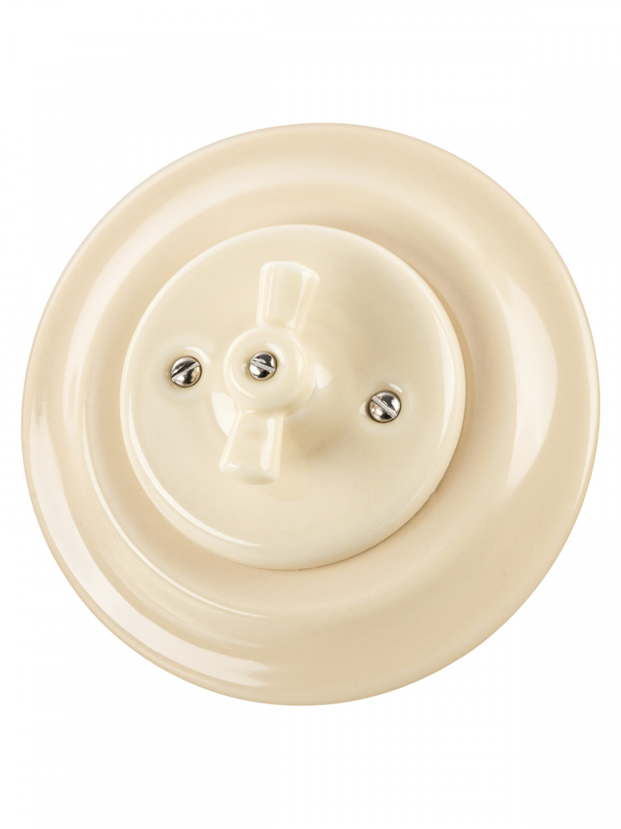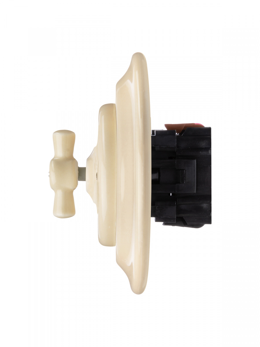 - Выключатель скрытой установки фарфоровый поворотный перекрёстный с ручкой (бантик) 10А сл. кость «Болонь» TDM (SQ1820-0318)