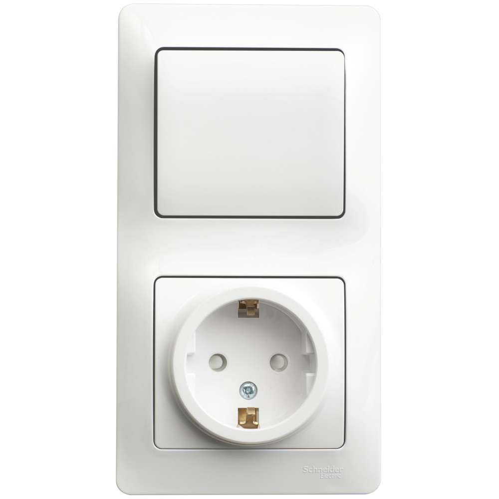 - Блок комбинированный GLOSSA розетка защ. шторки с заземл.+выкл. 1-кл. бел. Systeme Electric GSL000170 (1/9/54)