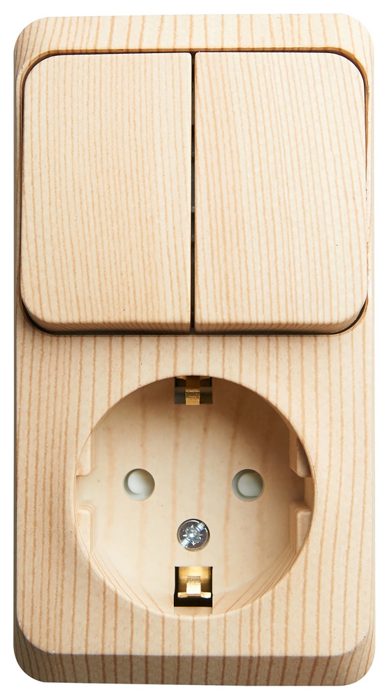 - Блок О/У ЭТЮД (1-м розетка с зазем. защ. шторки + 2-кл. выкл.) сосна Systeme Electric BPA16-202D (1/10/80)