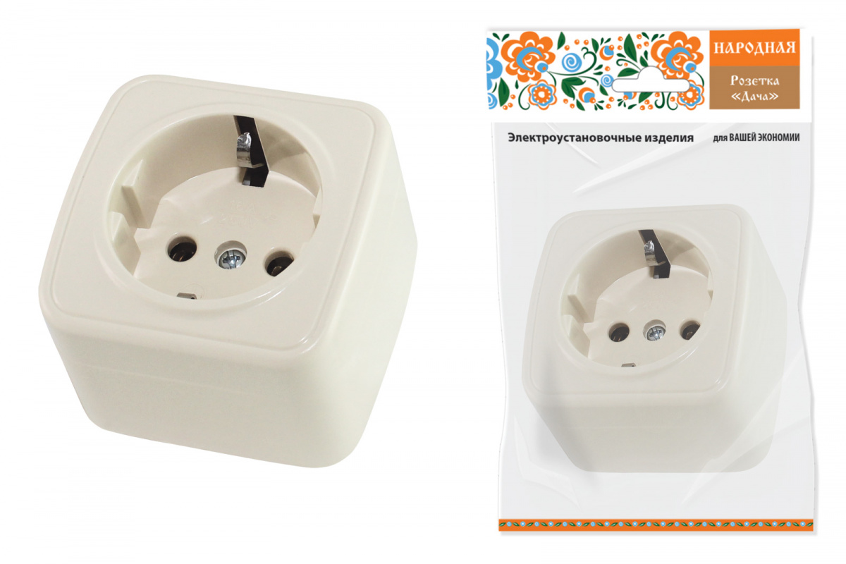 - Розетка 2П+З открытой установки IP20 16А, сл. кость "Дача" Народная (1/10/100) (SQ1824-0021)