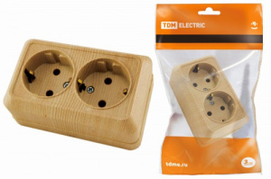- Розетка двойная 2П+3 открытой установки IP20 16А 250В (керамика) сосна "Ладога" TDM (1/10/100) (SQ1801-0413)