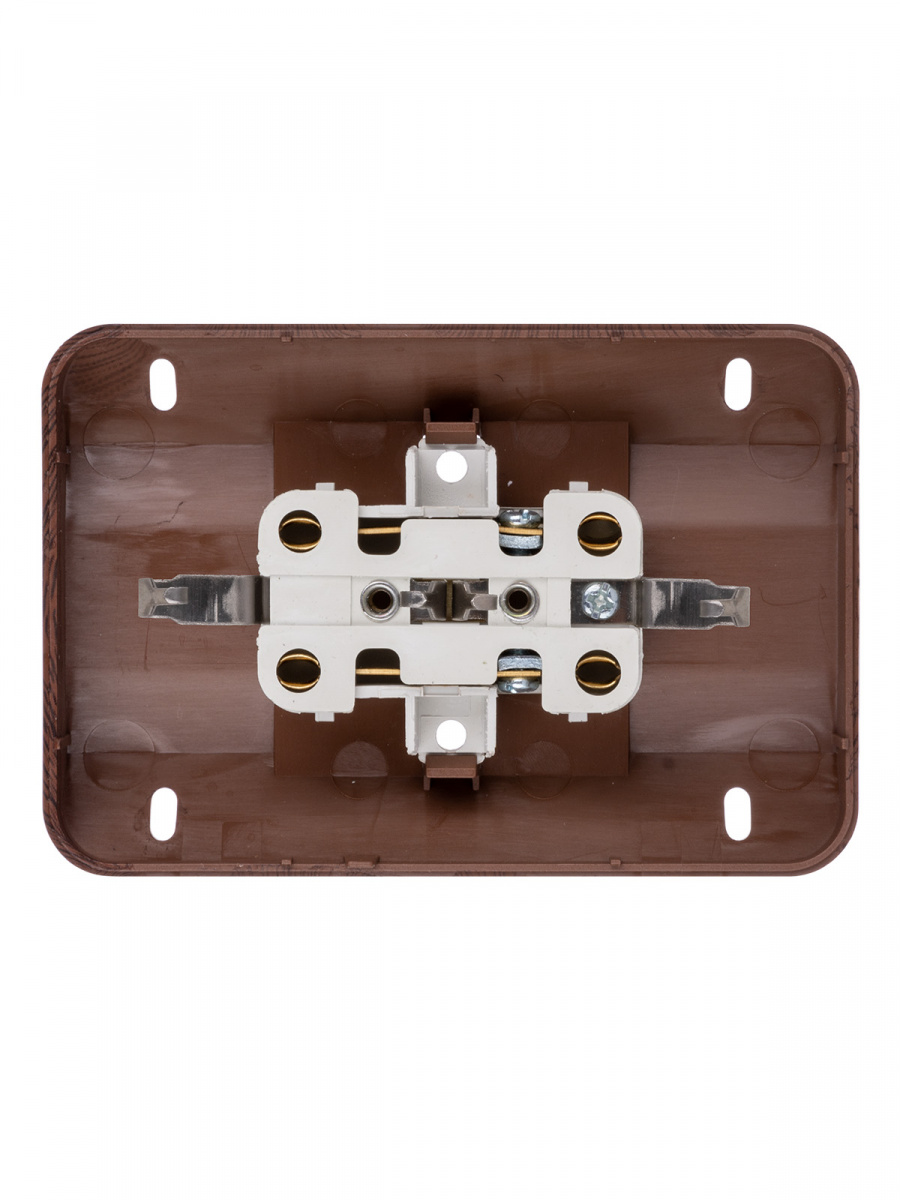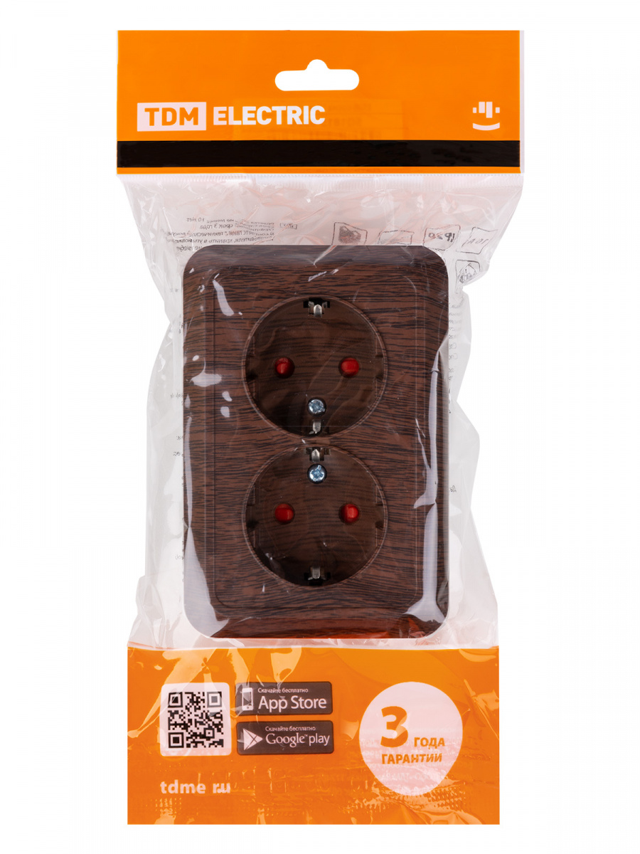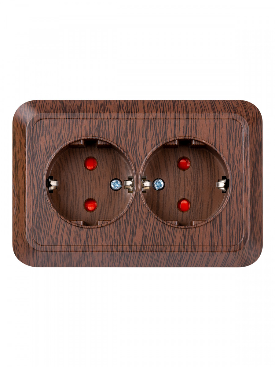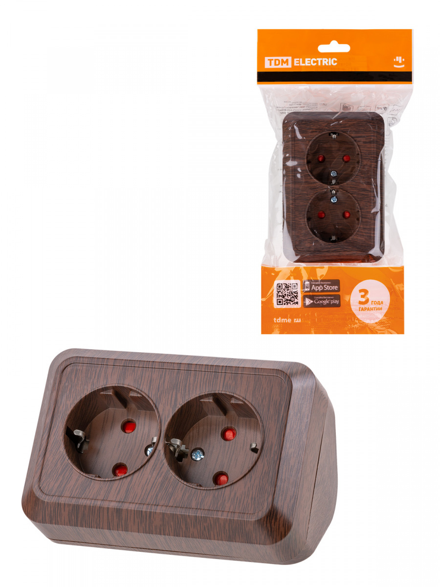 - Розетка TDM угловая двойная 2П+3 открытой установки с з/ш IP20 250В 16А бук "Ладога" (6/72) (SQ1801-0343)