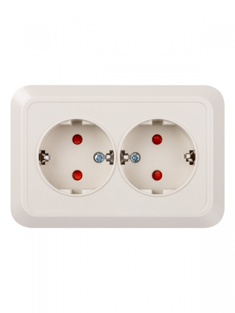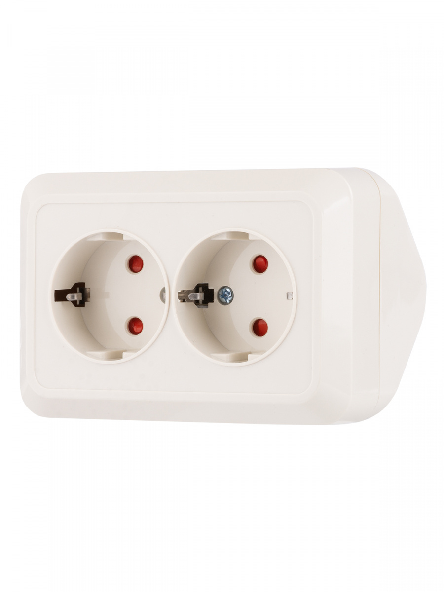 - Розетка TDM угловая двойная 2П+3 открытой установки с з/ш IP20 250В 16А сл. кость "Ладога" (6/72) (SQ1801-0243)