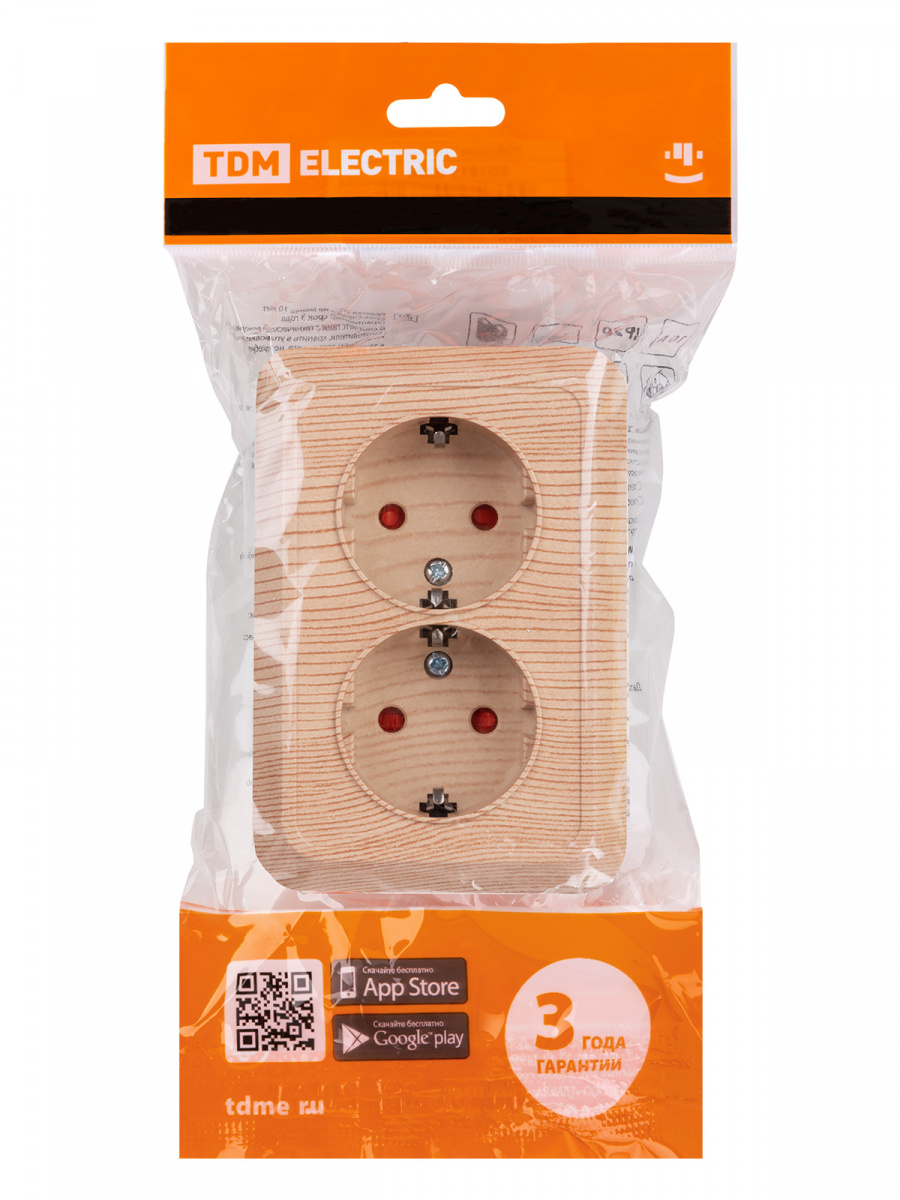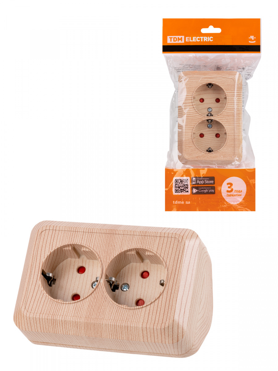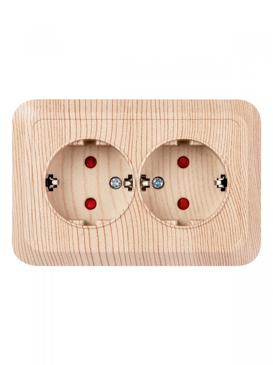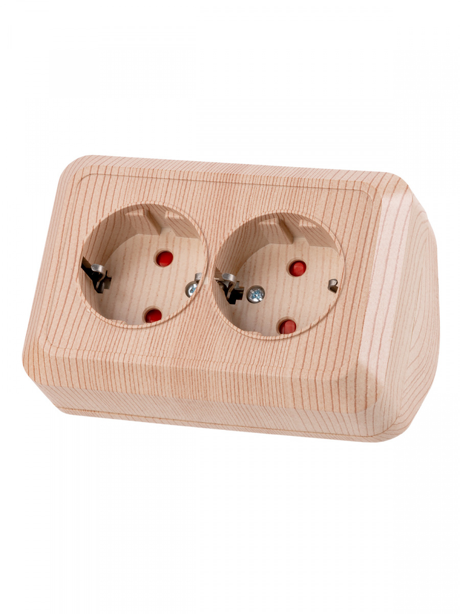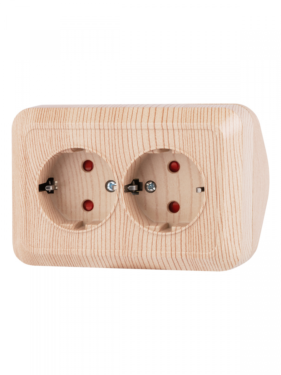 - Розетка TDM угловая двойная 2П+3 открытой установки с з/ш IP20 250В 16А сосна "Ладога" (6/72) (SQ1801-0443)