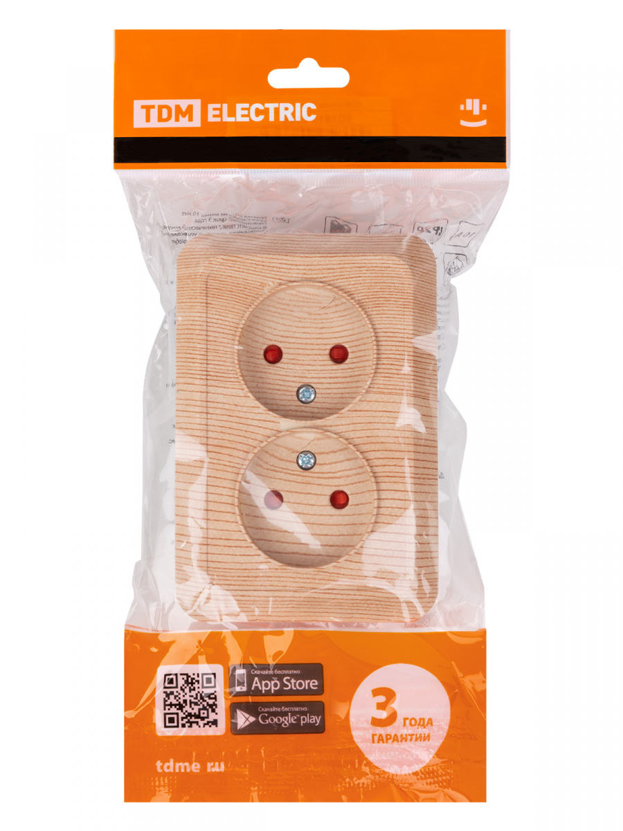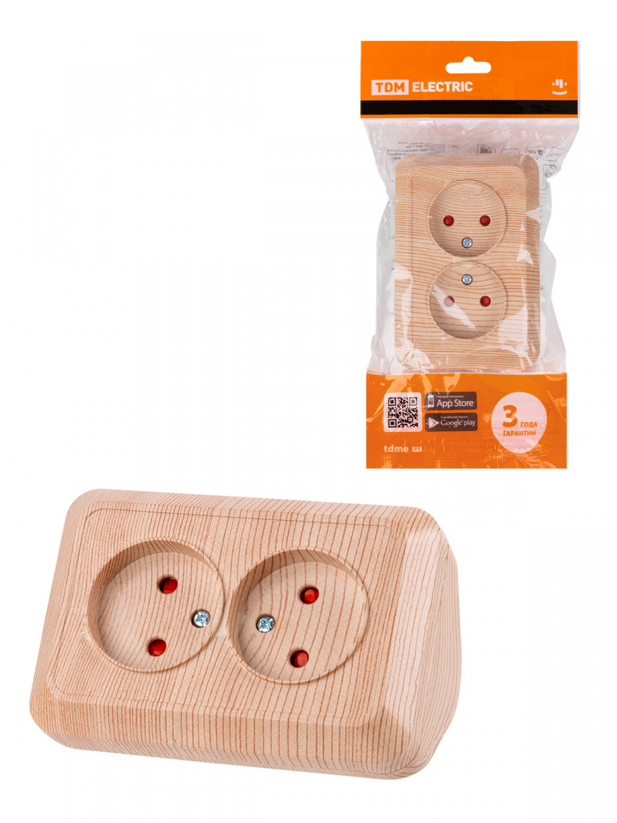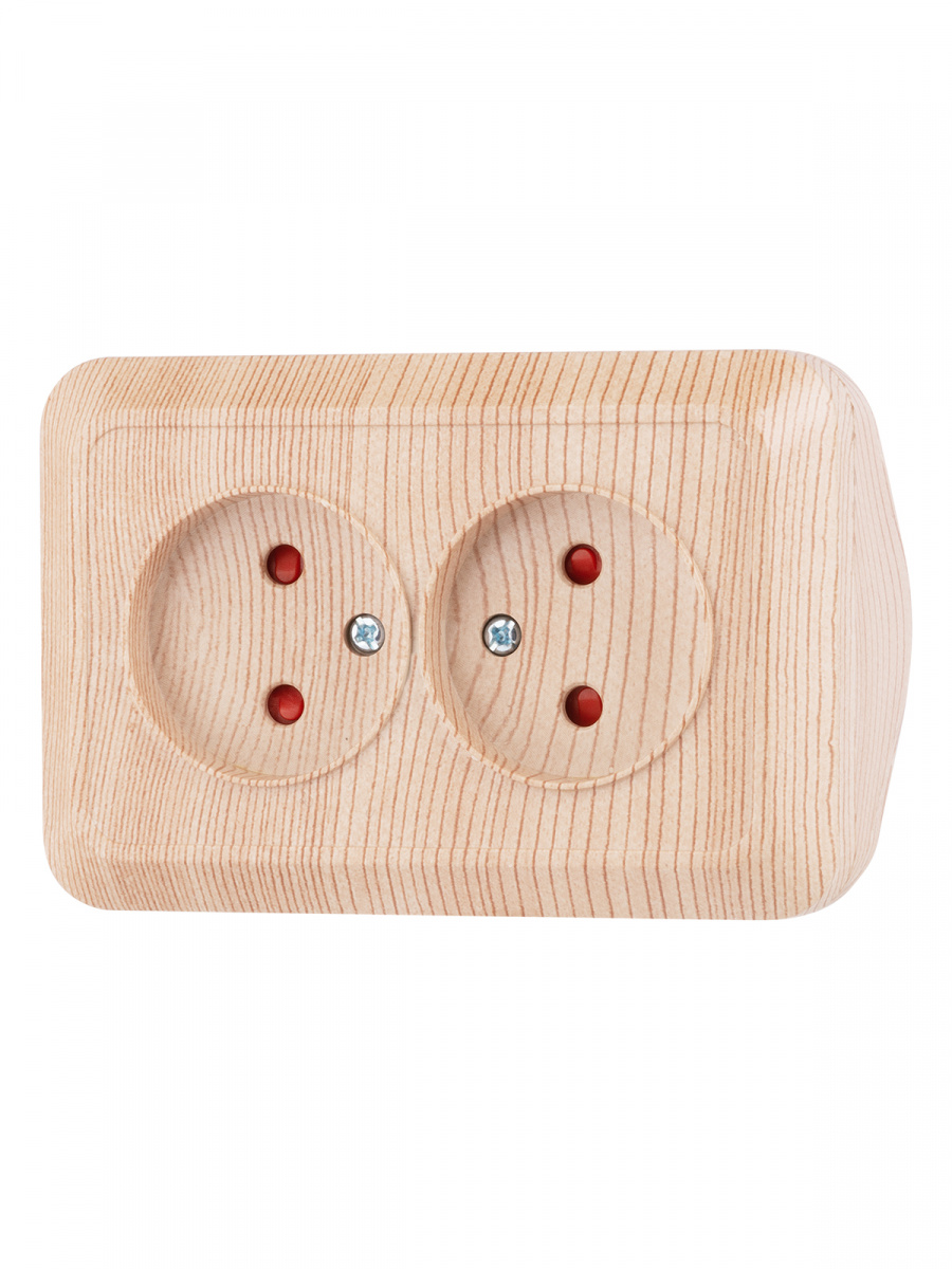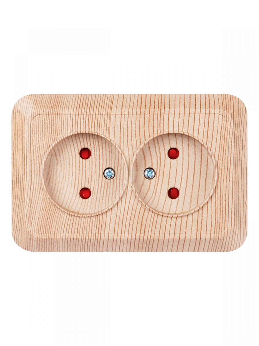 - Розетка TDM угловая двойная 2П открытой установки с з/ш IP20 250В 10А сосна "Ладога" (6/72) (SQ1801-0442)