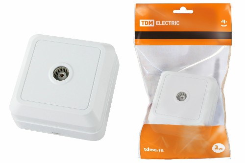 - Розетка TВ простая (0-2400 Гц, "мама") открытой установки, IP20 белая "Ладога" TDM (1/200) (SQ1801-0025)
