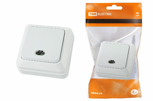 - Выключатель 1-кл. открытой установки с подсветкой IP20 10А, белый "Ладога" TDM (1/200) (SQ1801-0009)