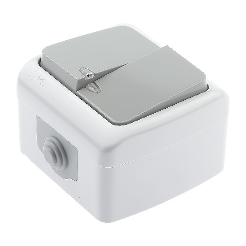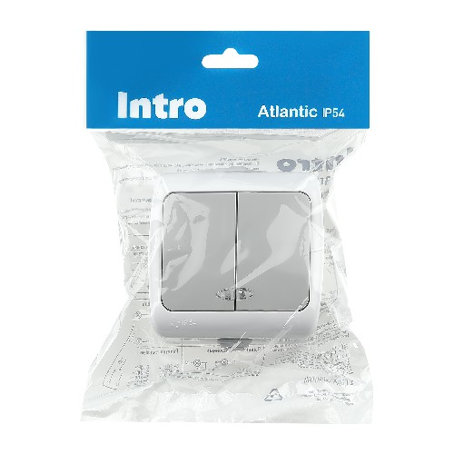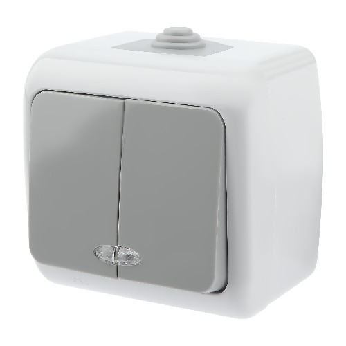 - Выключатель INTRO Atlantic 5-105-03 двойной с подсветкой, 10А-250В, IP54, открытой установки, серый (Б0050944)